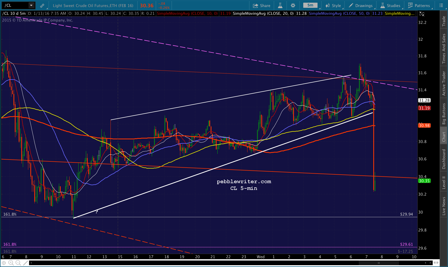 ES just backtested the broken white channel, so I’d try a long position here if USDJPY were bouncing. But, it’s dropping, so I can only assume they’re aiming for SPX 1914.35, to run some stops, or lower. Back to short with tight stops.