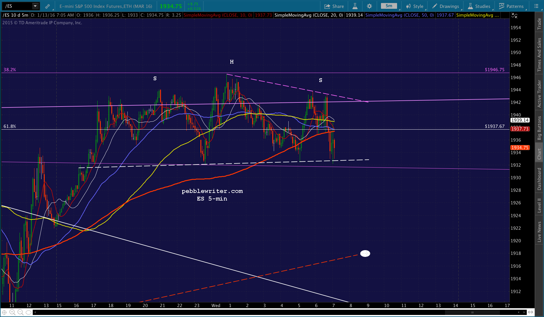 Could be a headfake, but ES is pushing below the neckline as SPX dips below the SMA5 20. I’d hazard a short position with tight stops here at 1939.63.