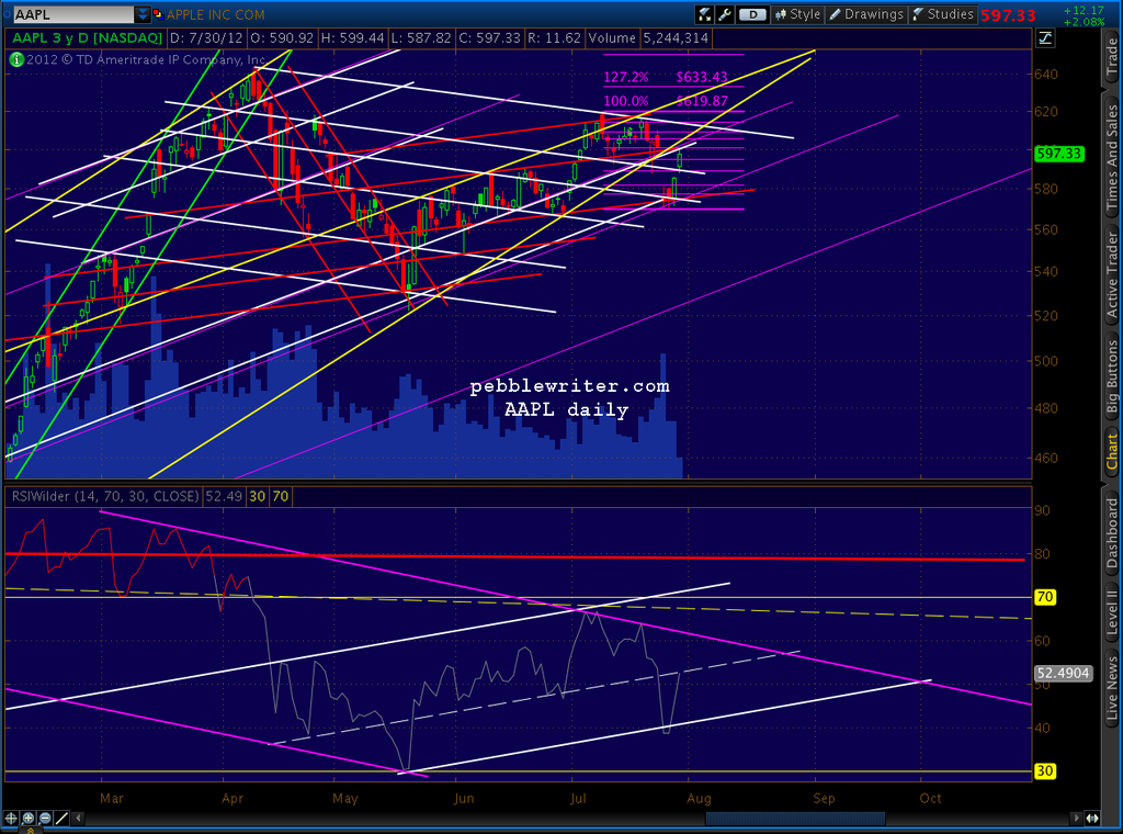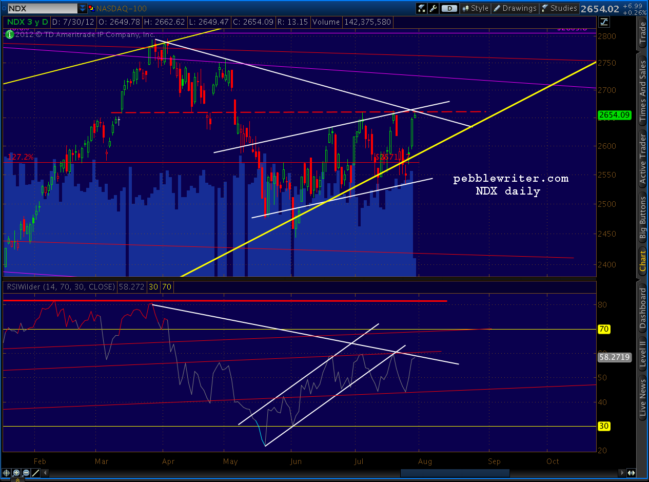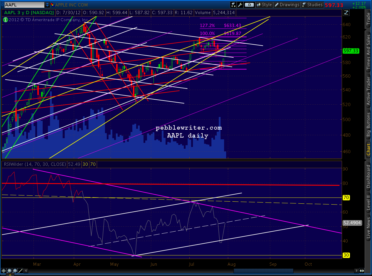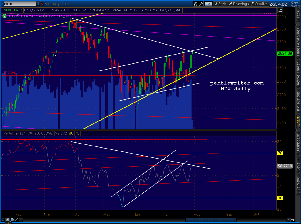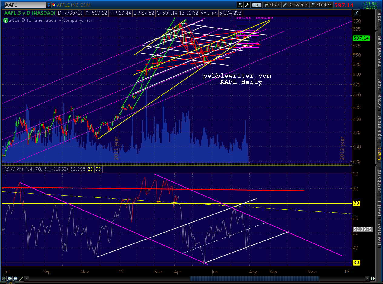 Interesting goings on in AAPL and NDX. Note the price channel tag and the RSI midline channel tag.