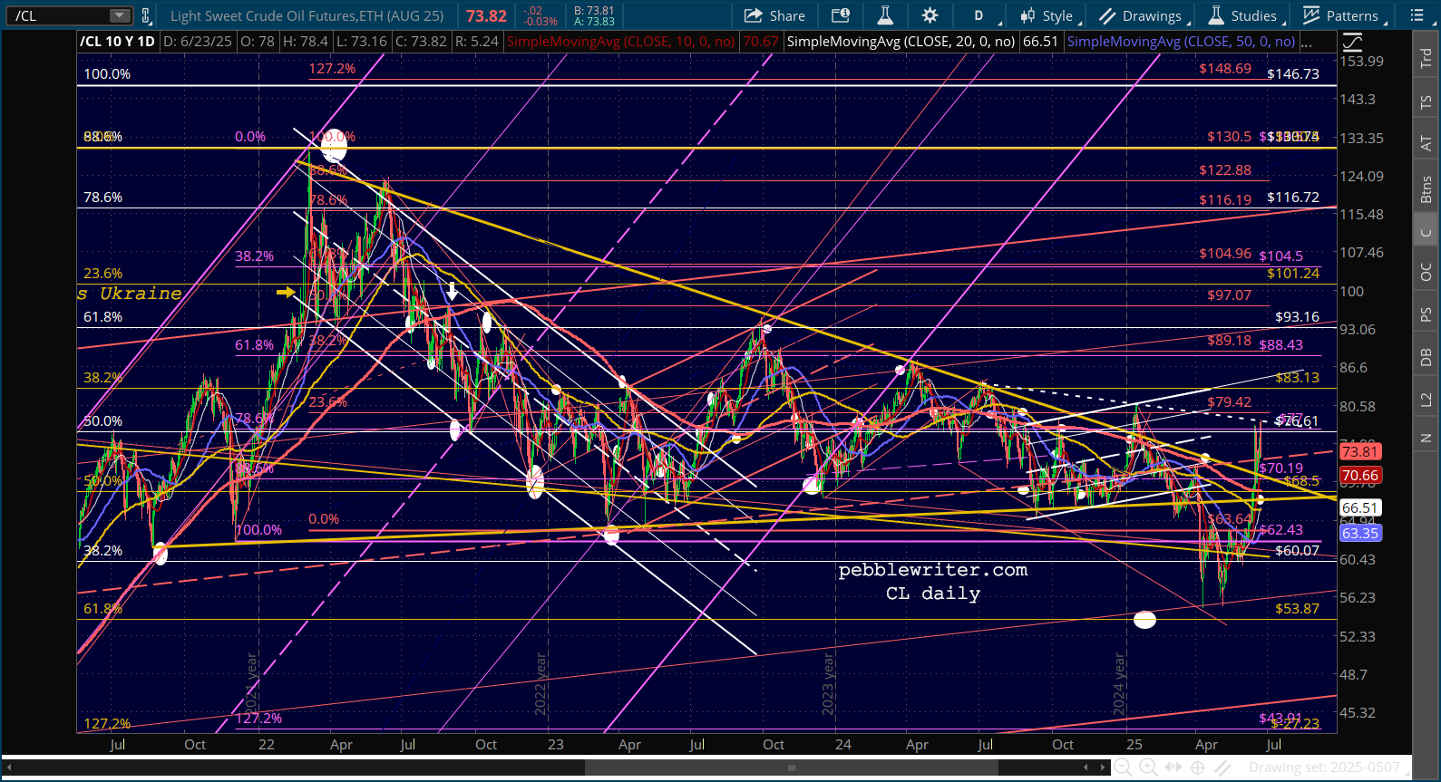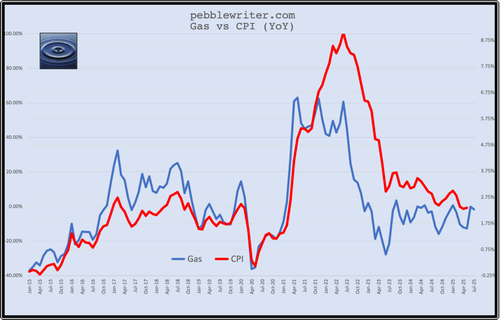 In the two days since I began this post, CL has dropped considerably after hostilities between Israel and Iran have subsided. Were it not for the tariffs which are set to kick in on July 9 (the 90-day pause), inflation could be considered licked in short order, particularly with OPEC cooperating – at least in the short run – with Trump.