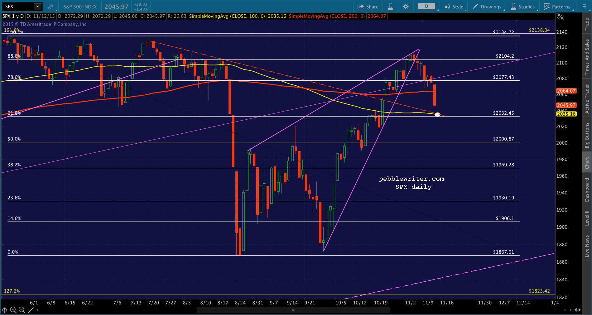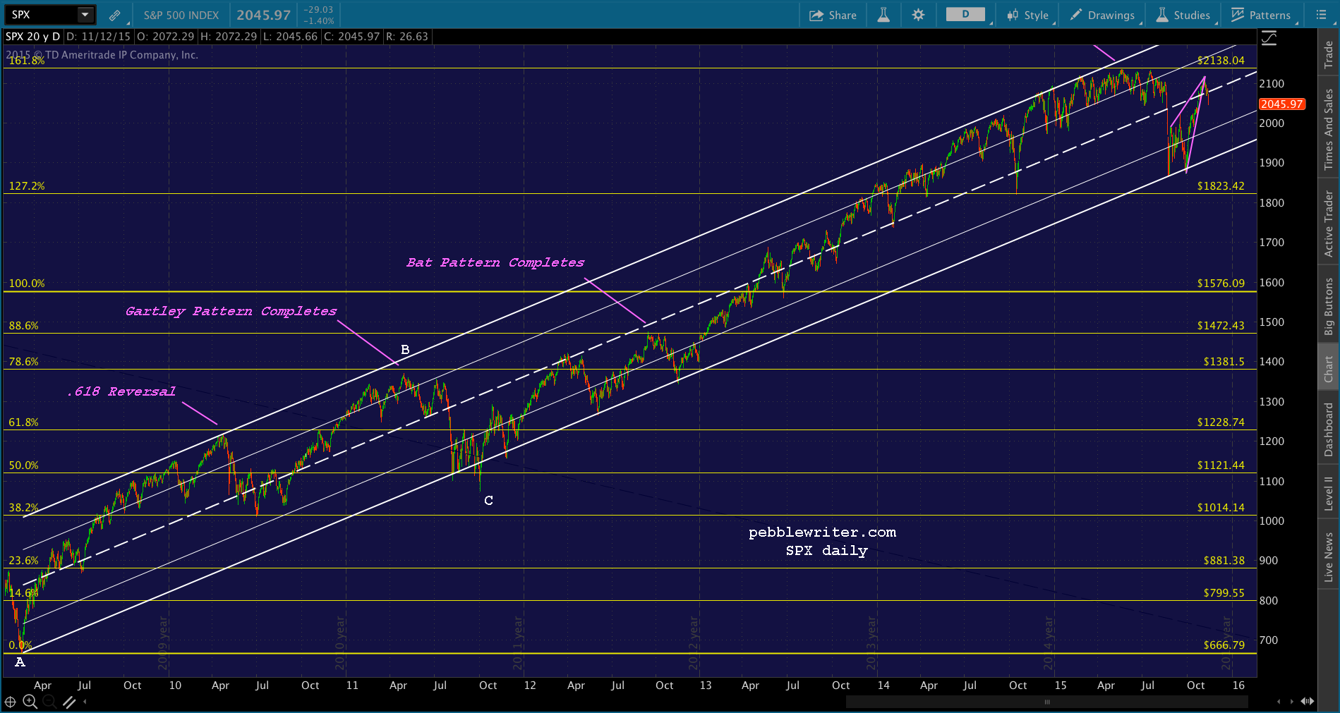 It’s been almost six months since we called the top on SPX. On May 20, I noted that SPX was nearing a key Fibonacci level that should produce a reversal [see: The Last Big Butterfly.] I laid out some potential targets that might be tagged in an unrigged market: