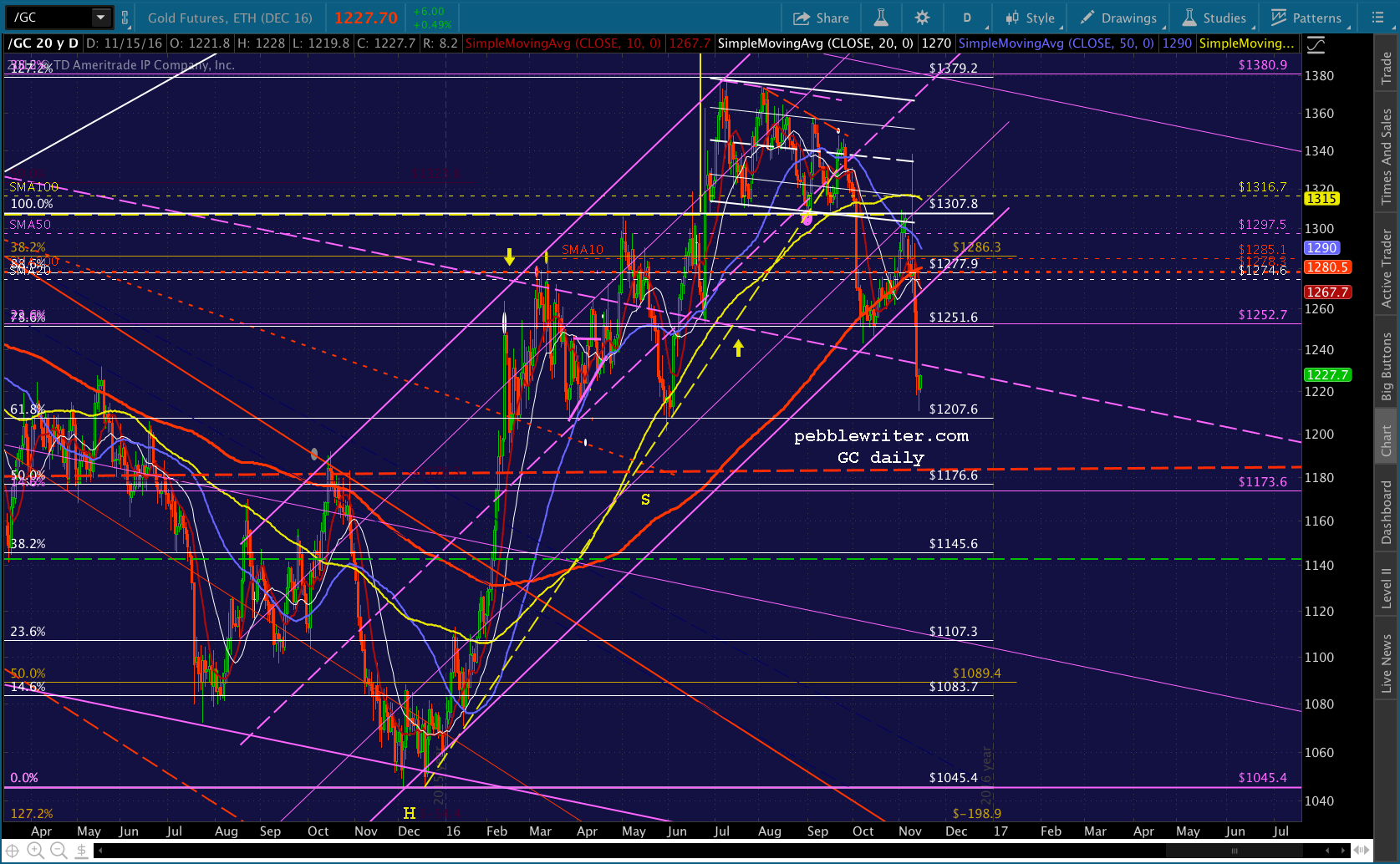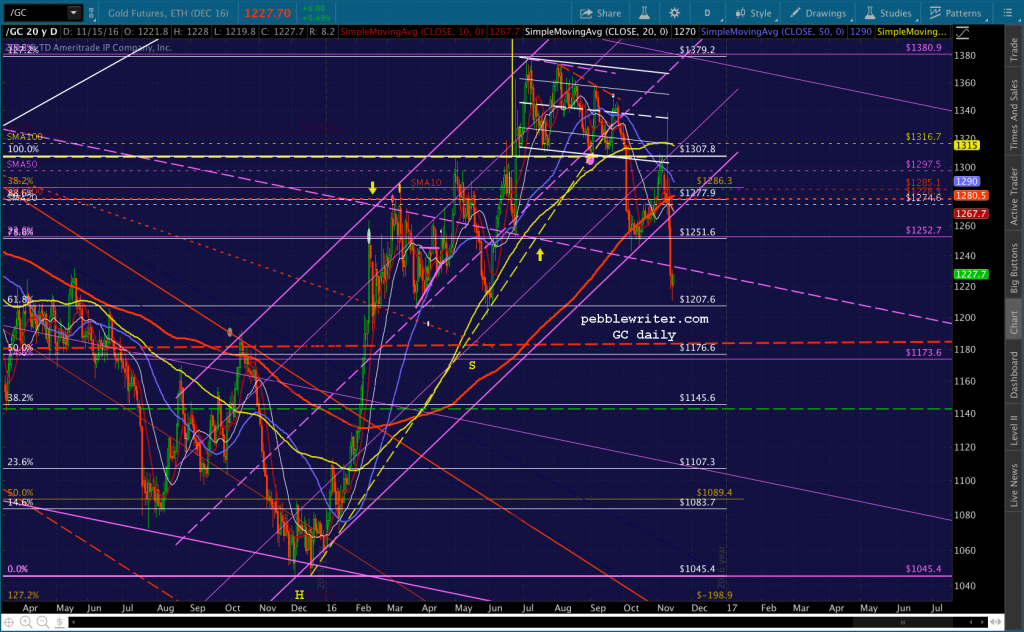 This isn’t at all far fetched. Consider that GC’s channel finally broke down two days ago and has potential to 1083 — a 12% drop from here. What better way to finish the year out?