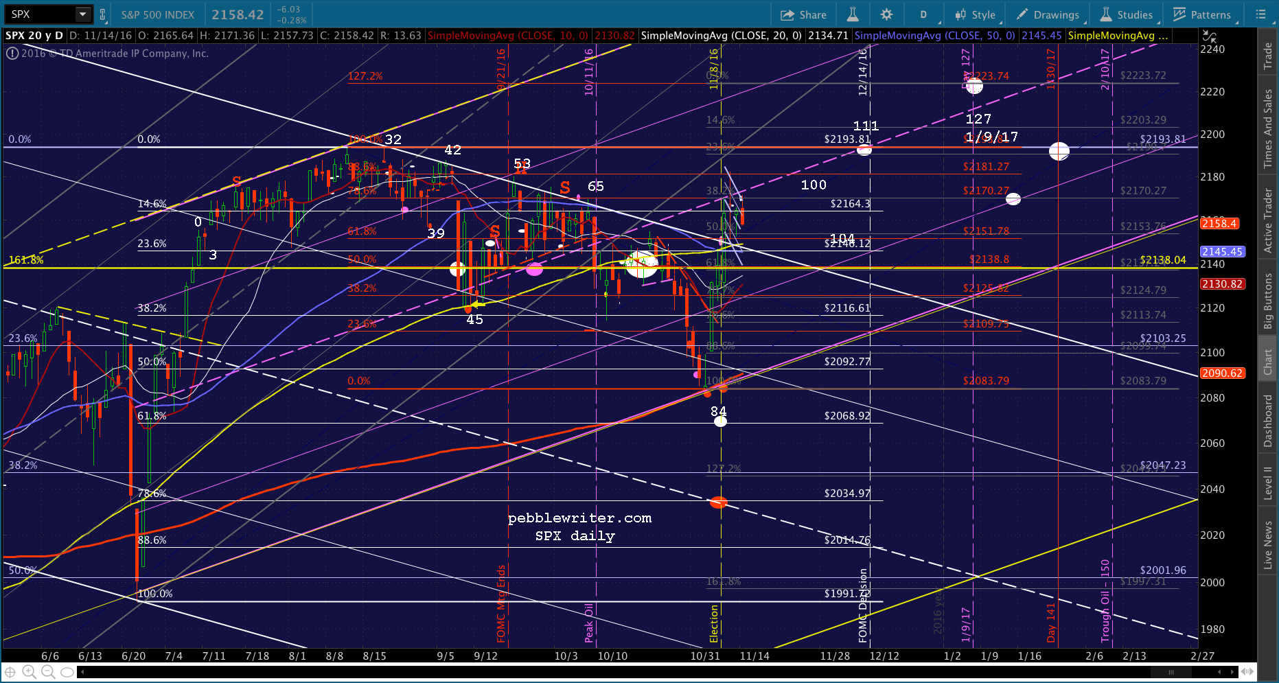 That’s about it for the Big Picture which, if you’re still reading, is quite obviously nothing but a brain dump. If you’re Aspergery like yours truly, this has been fun. If you just want to know what time it is, rather than how the watch works, I commend you for your patience. The most likely path is probably the most bullish: a rise to 2223 by FOMC day on Dec 14, followed by a modest selloff into the close, and the real action to come after 2016 is in the books.