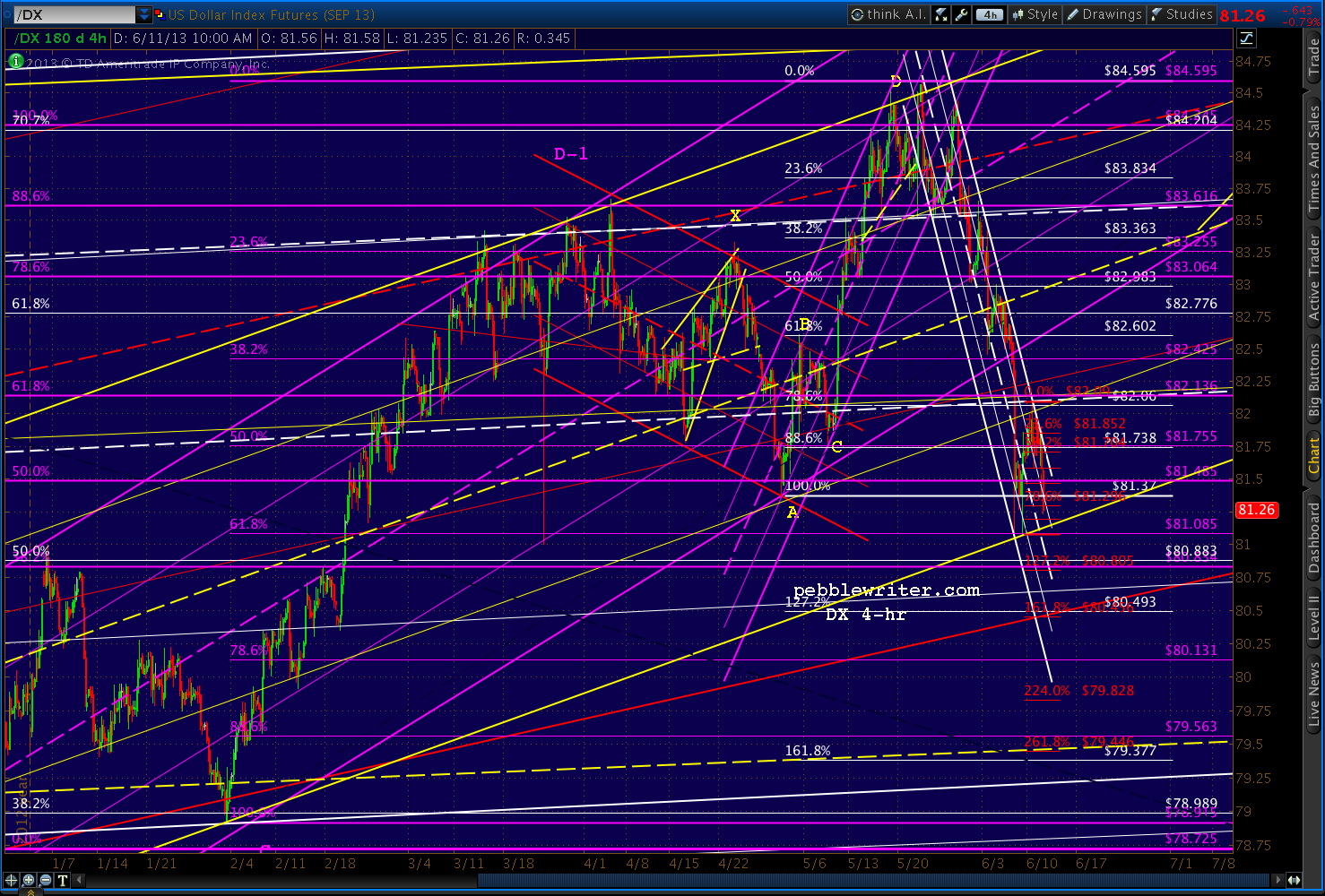 I can easily see DX dipping to 79.56 in the next day or two, but it needs to clear the .618 at 81.085 first.