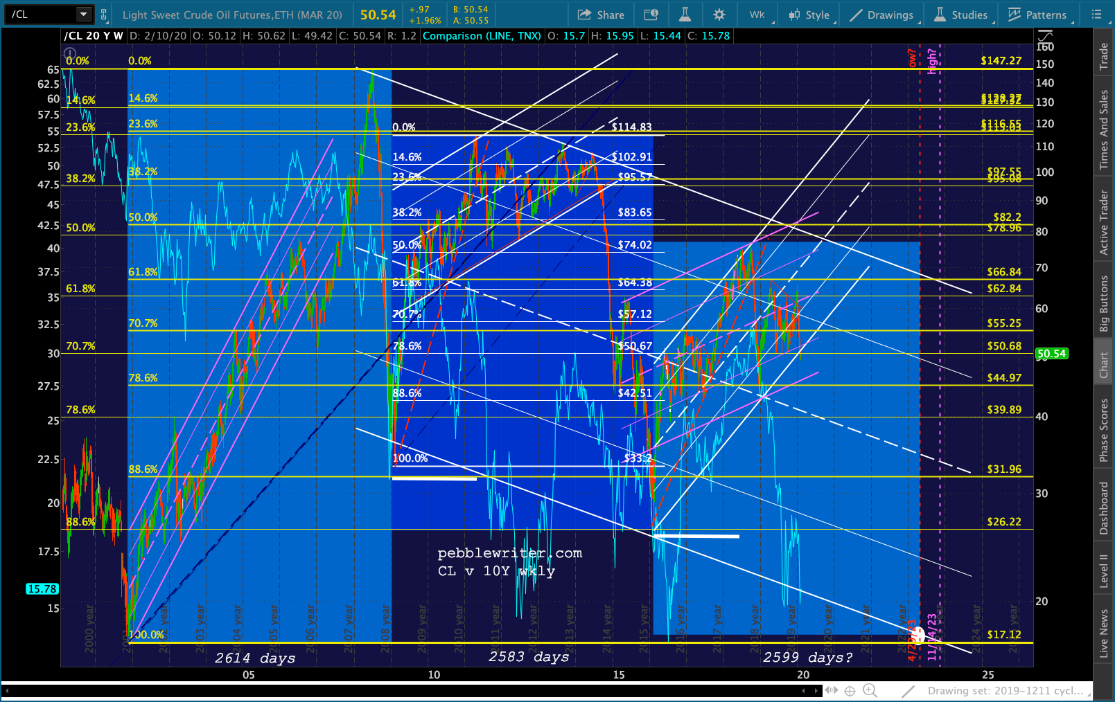 CL is in a position to give it a boost by simply popping out of the falling purple channel. It’s very close.