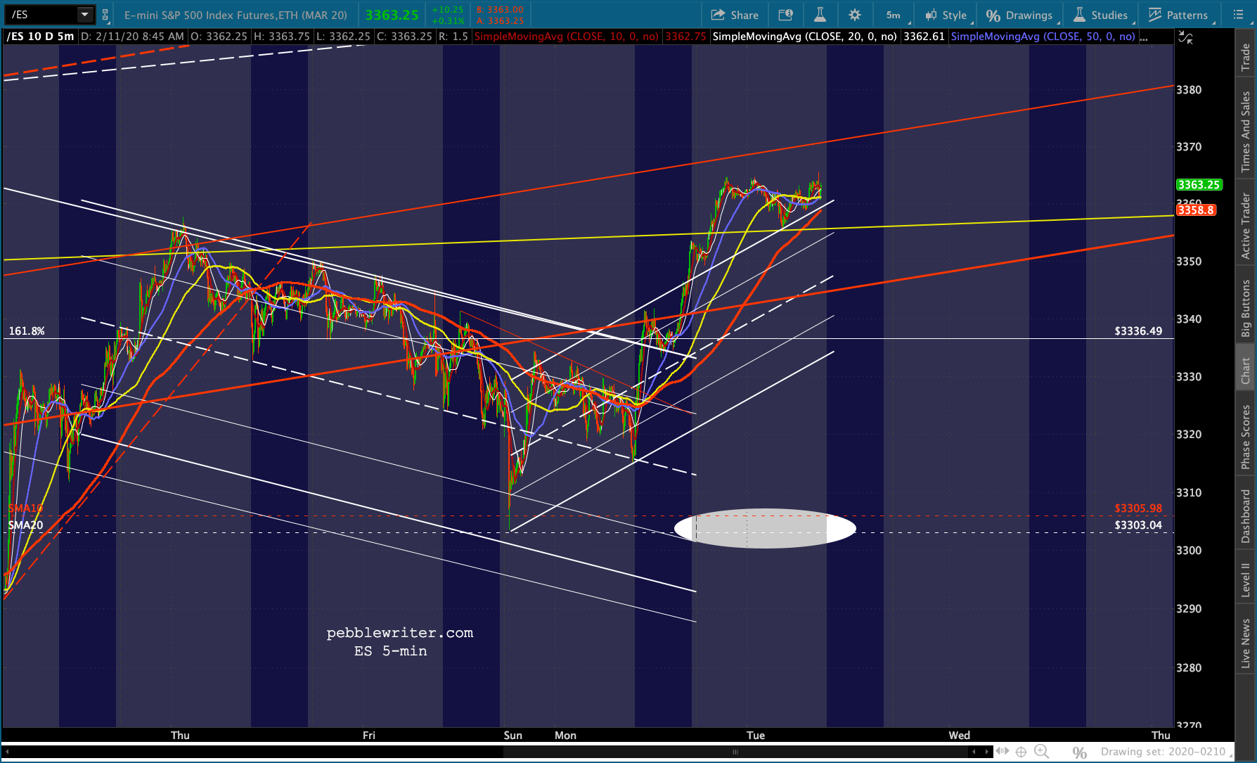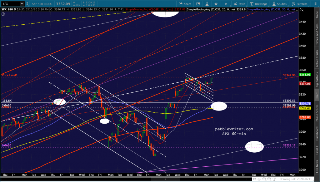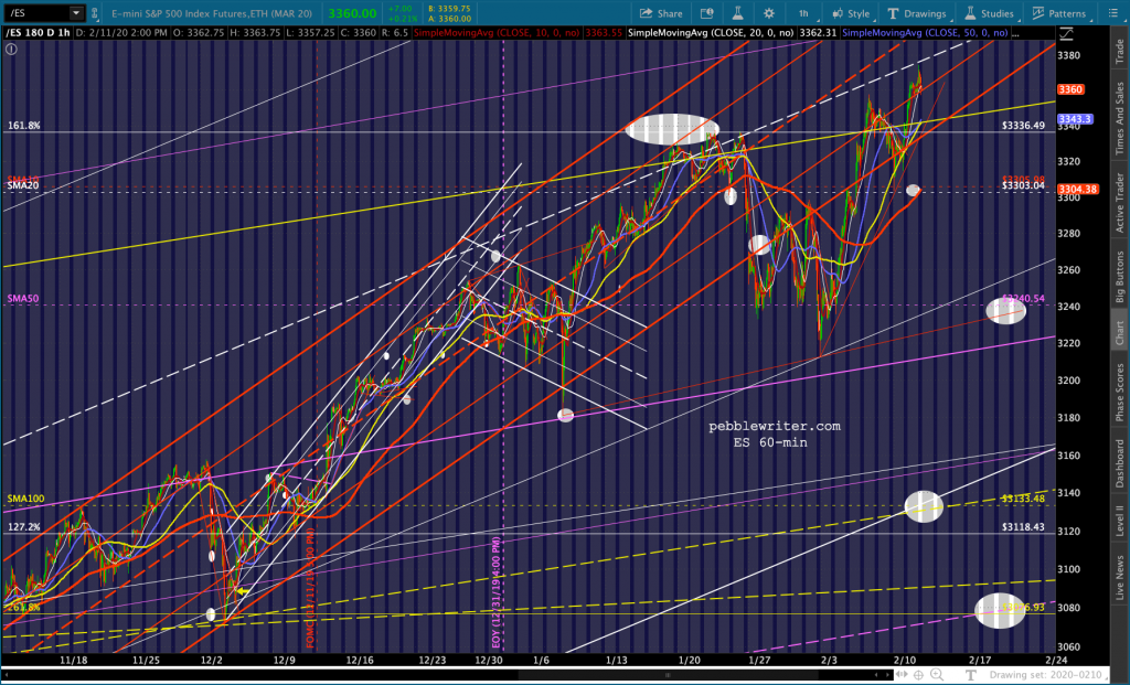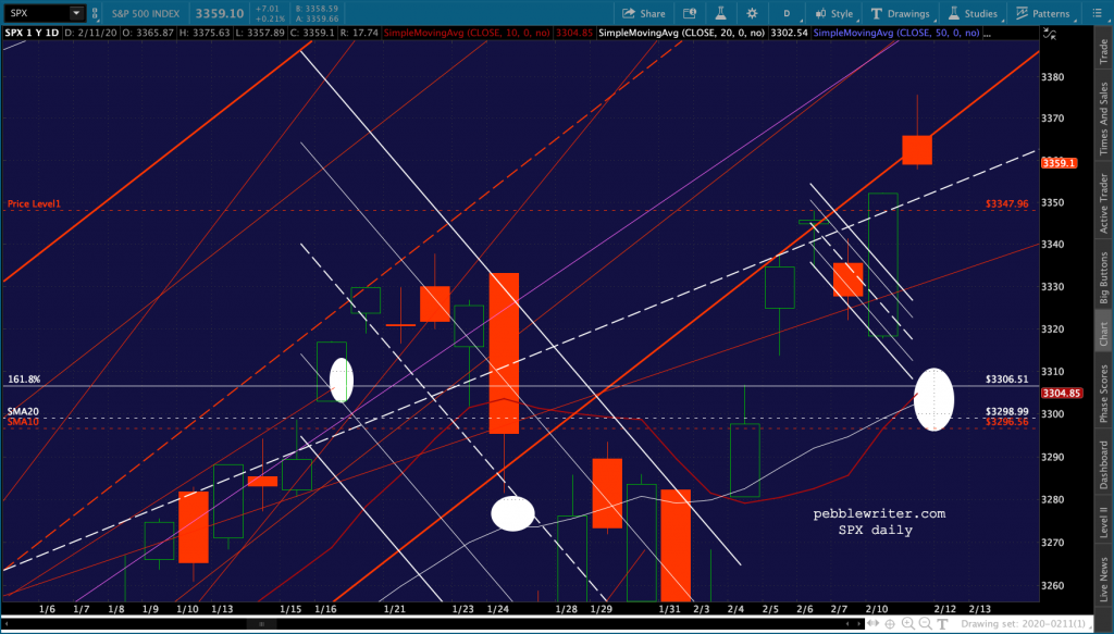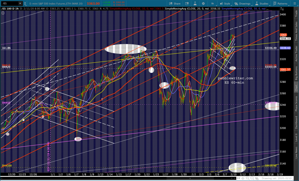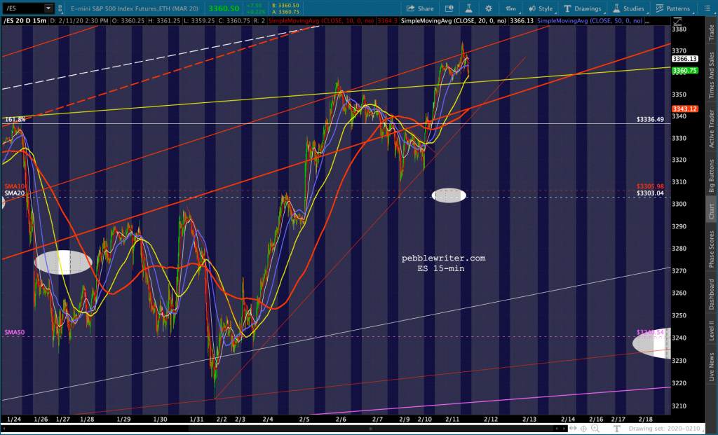I wouldn’t be surprised if ES falls to test the 1.618 at 3336.50 again. Though SPX would close its gap at 3352.26. Keep an eye on this TL for ES…