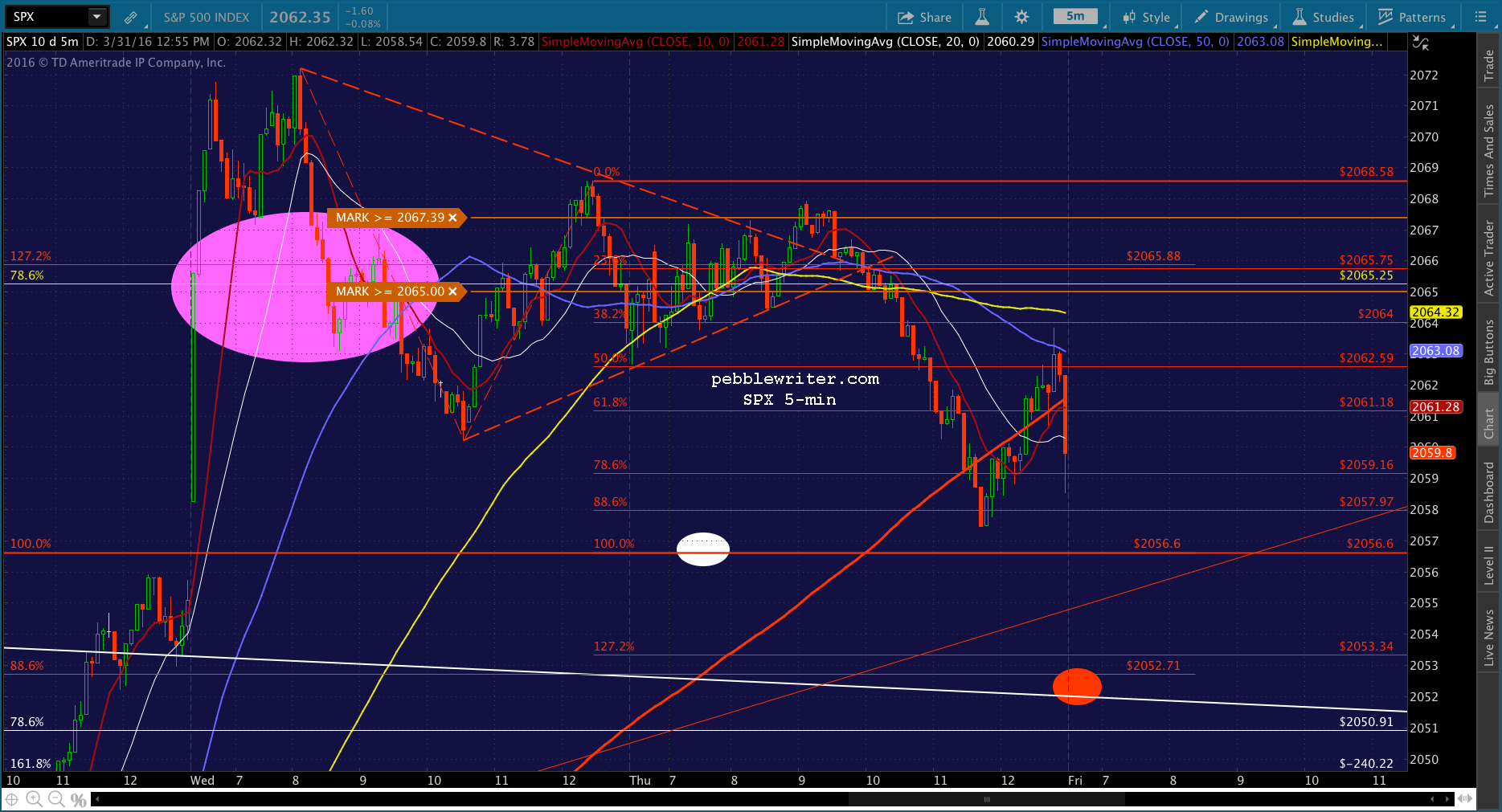 Just noticed that this morning’s dip set up a perfectly proportioned C=A corrective wave to exactly 2056.60. I’ll take a crack at a short with tight stops if we get the slightest reversal in CL or USDJPY. Note that SPX’s SMA5 10 has now crossed beneath the 20, 50 and 100.