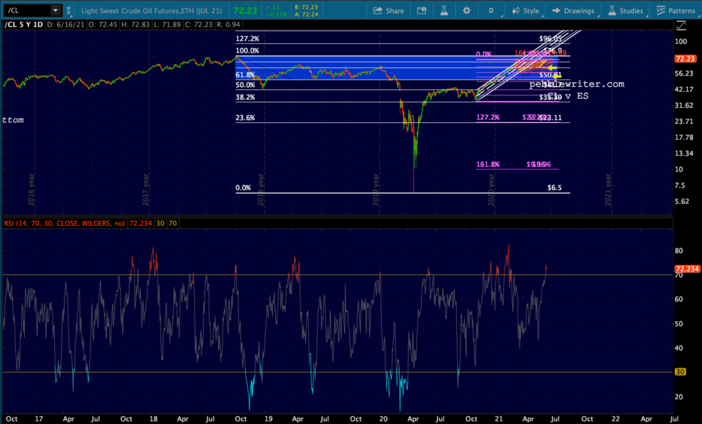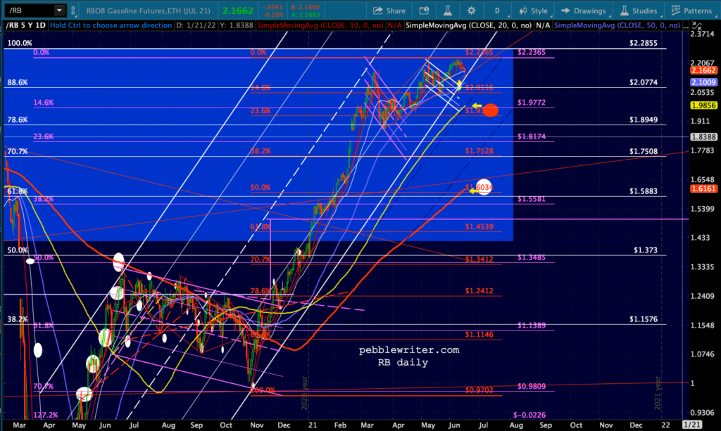 I have suggested quite strenuously in the past that the obvious solution is to knock oil/gas prices back down. They are both way overbought, running serious negative divergence, and are way out of whack with fundamentals. Energy use is nowhere close to what it was prepandemic, yet prices are near their Oct 2018 (May 2018 for RB) highs.