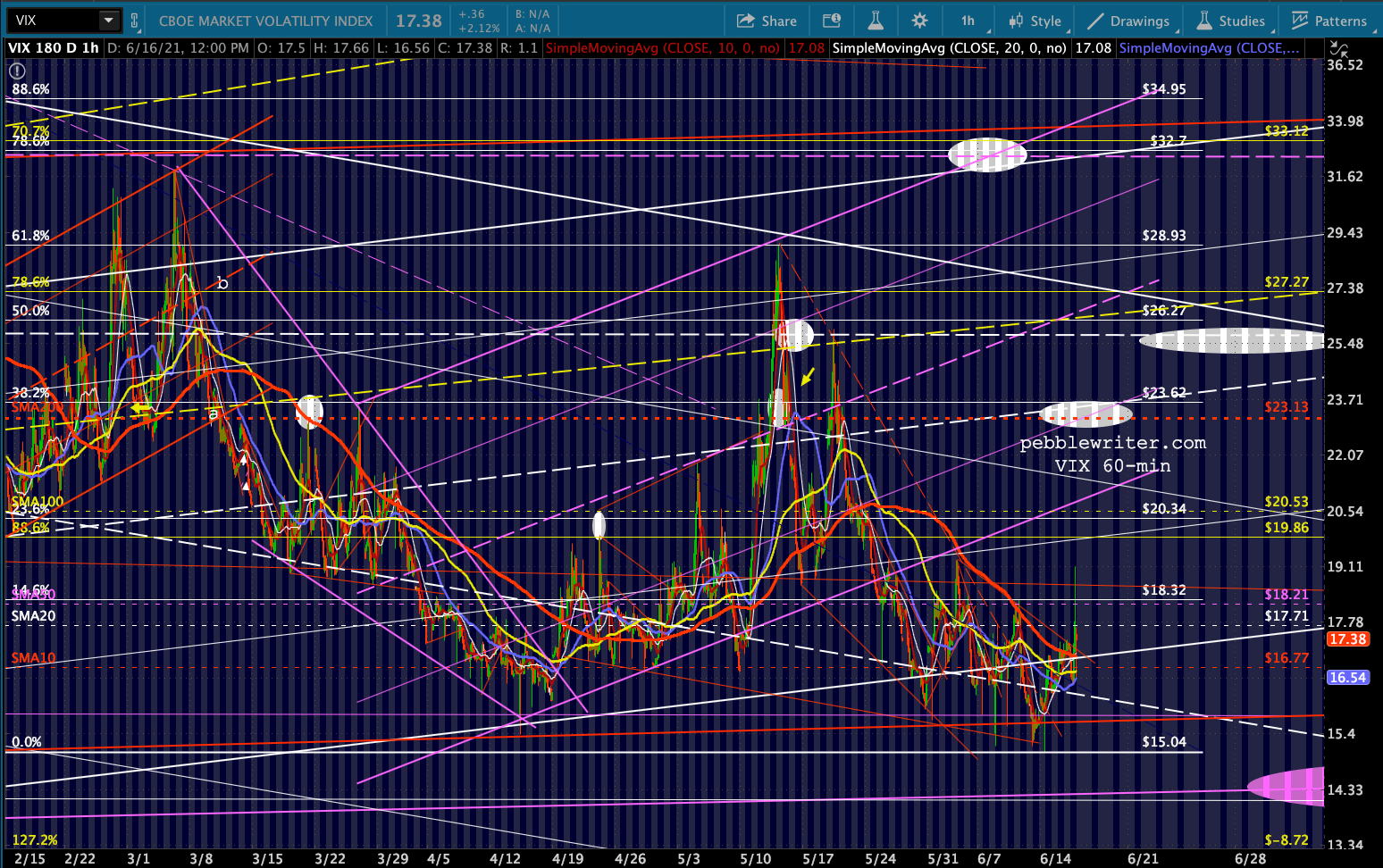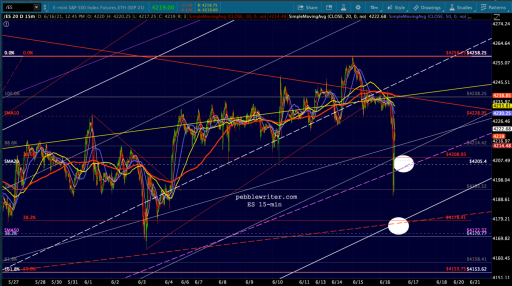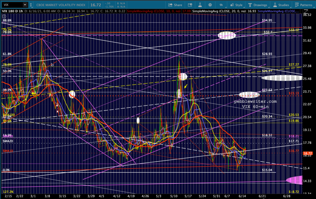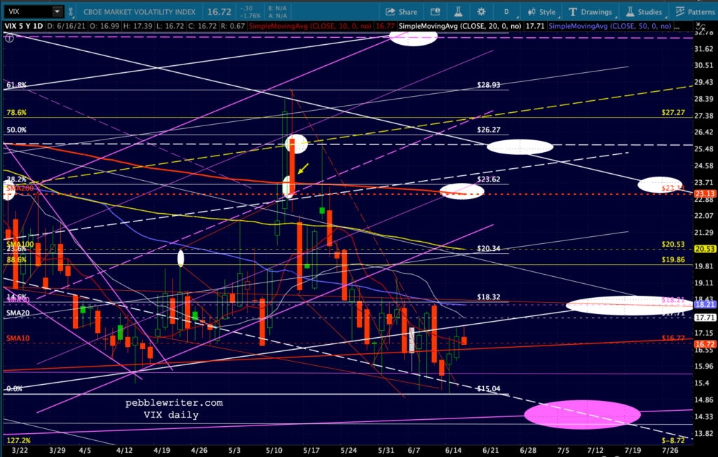 VIX remains in an excellent position to move lower and is currently using the nearby SMA10 to signal algos. If the market doesn’t like what Jay Powell says at 2:30, there is plenty of overhead resistance — all those moving averages (including the SMA200 which is conveniently near the top of the falling channel from Feb 2020) and that falling channel itself.