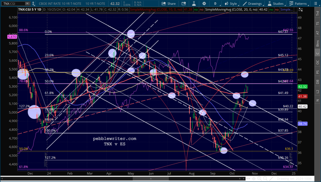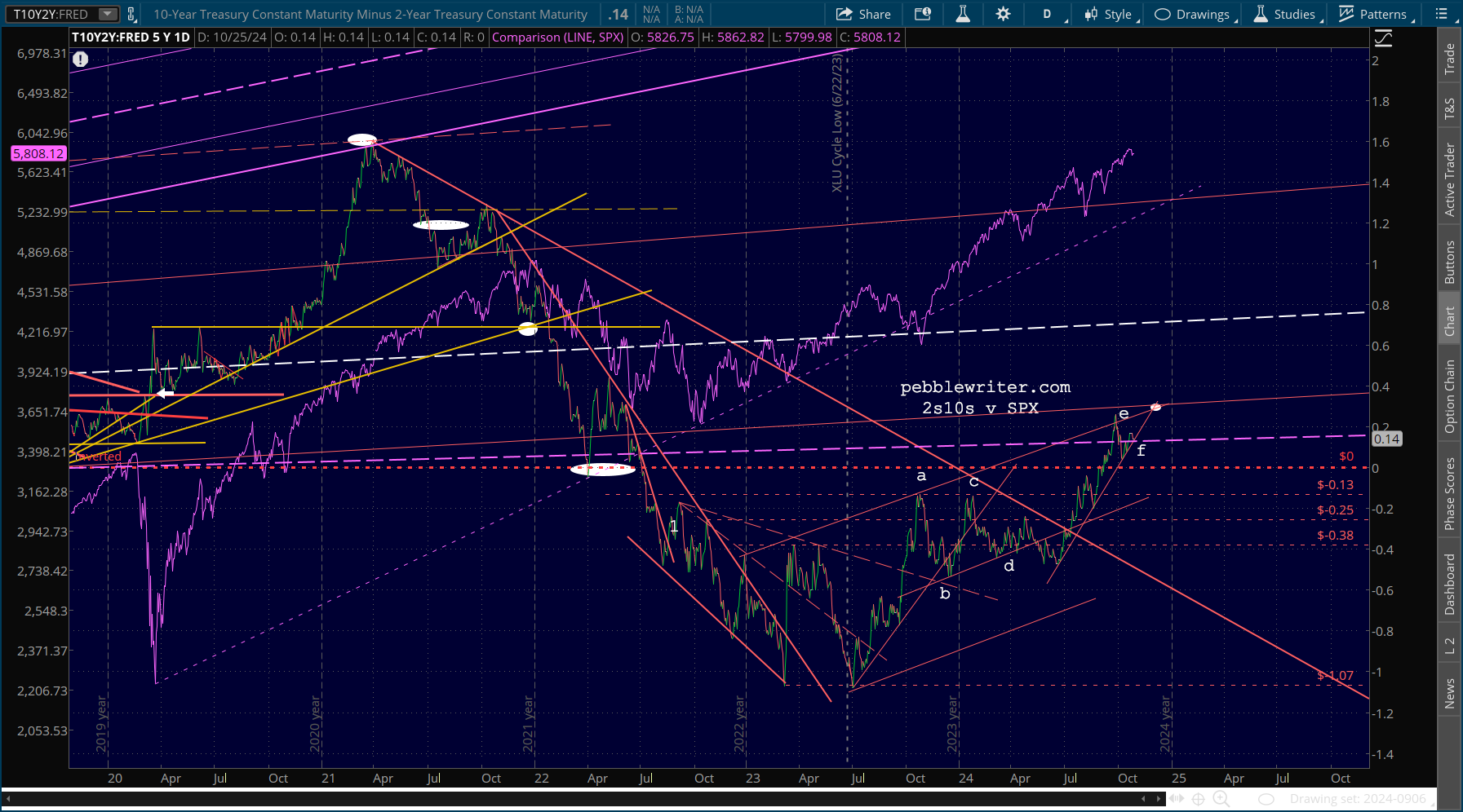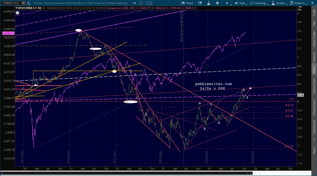 This helps put the brakes on the 10Y and keeps the 2s10s within its own rising wedge.