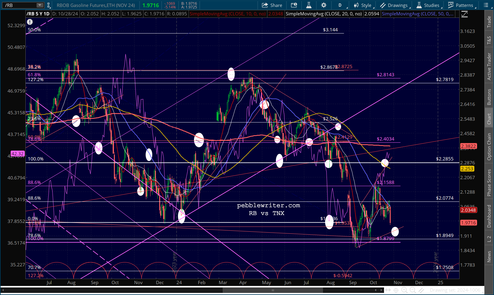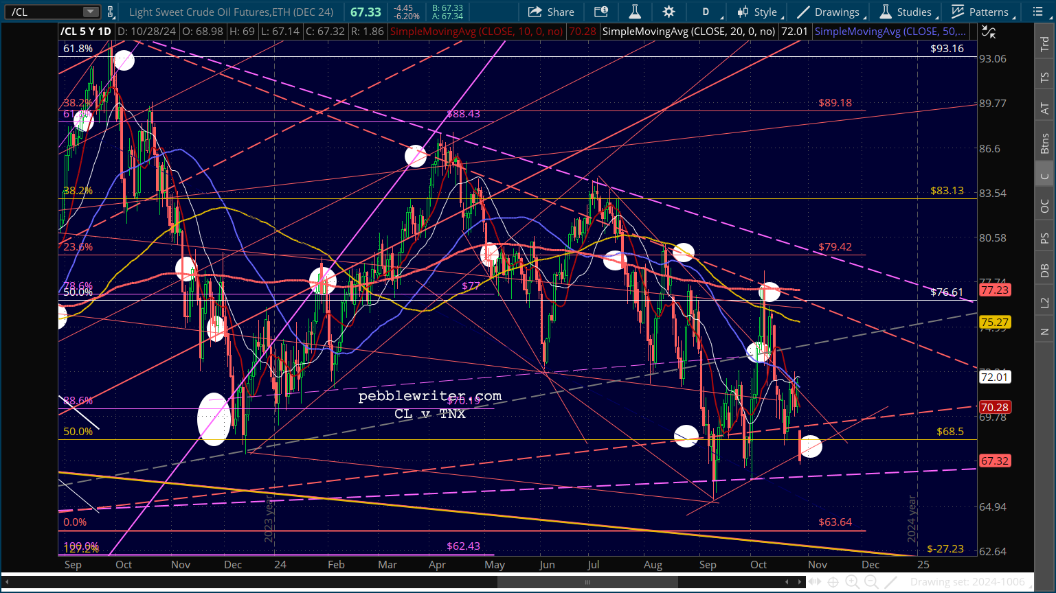 And, importantly, CL has broken down below its litte red TL after the latest news from the Middle East was less incendiary than expected.