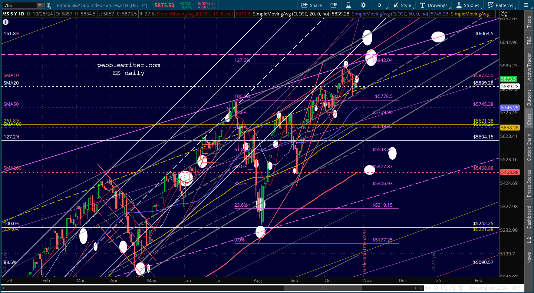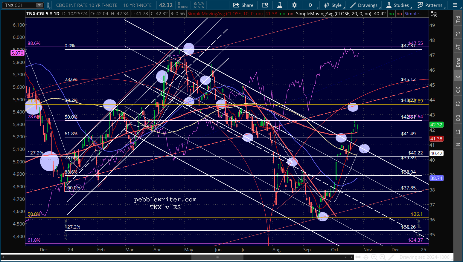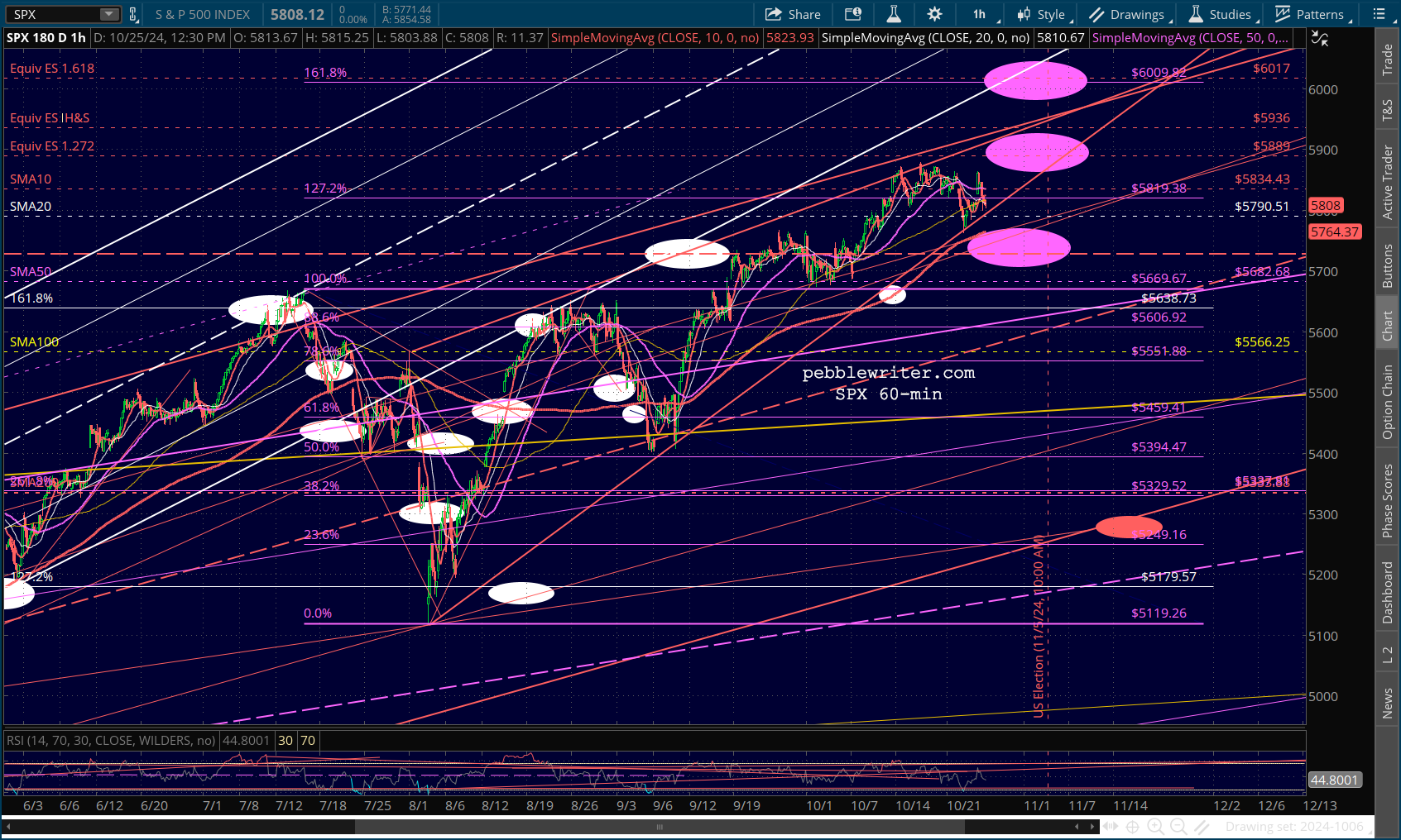 SPX still maintains a perfectly formed rising wedge even as its SMA10 slope turns negative.