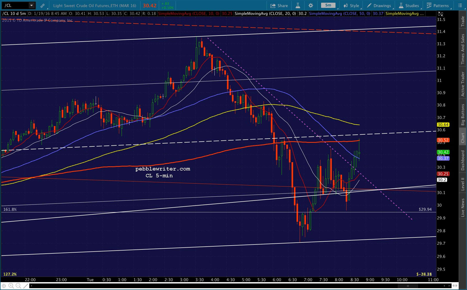 It will depend on USDJPY pushing through the falling purple channel midline and/or CL rebounding off 30. First, they need to bounce off supporting TLs.