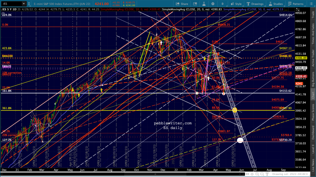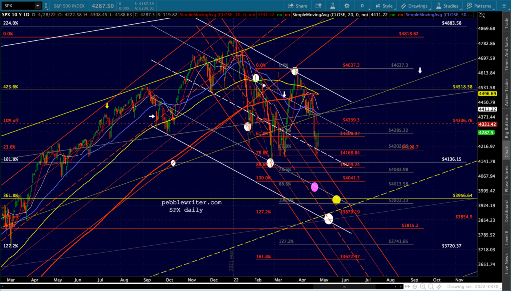 Futures came roaring back into the falling white channel yesterday, revealing what many know but few say out loud: the market is broken. When expectations of a 1% quarterly rise in GDP yield, instead, a 1.4% decline, stocks should decline. Plain and simple.