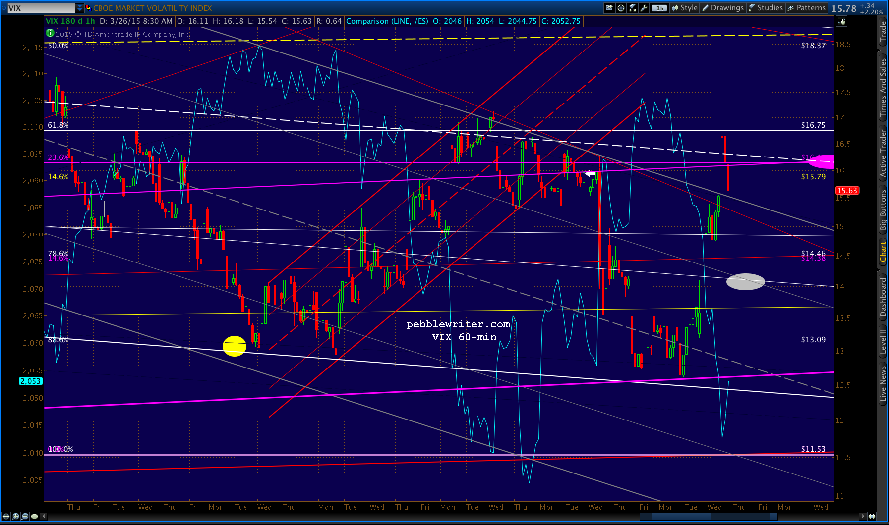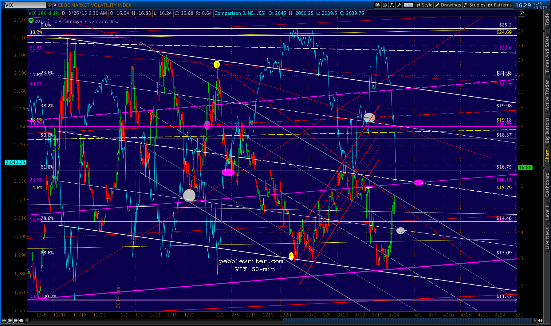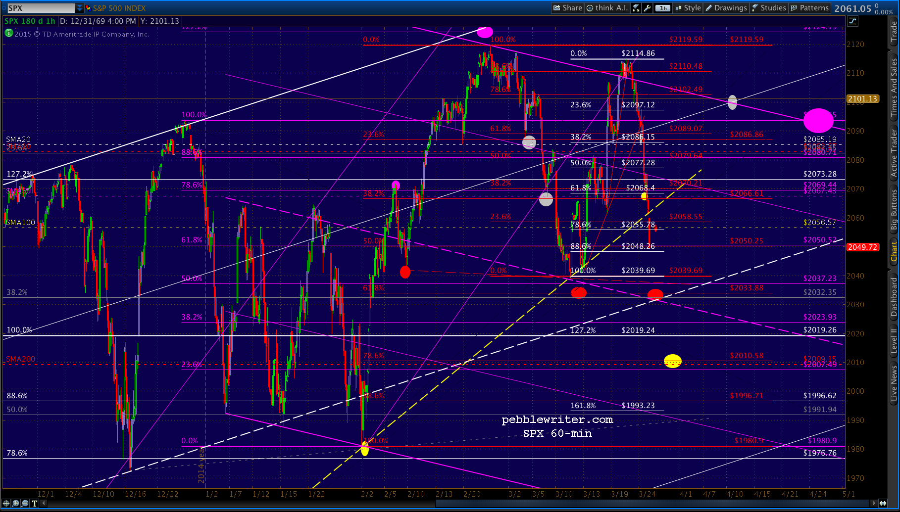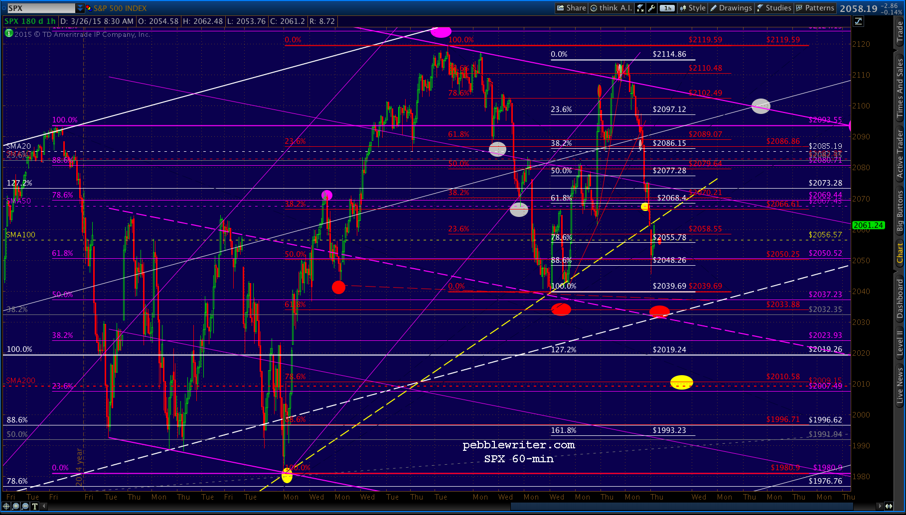 We should see support at the white .886 at 2048.26. But, should that break down, the red .618 at 2033.88 is the next target.