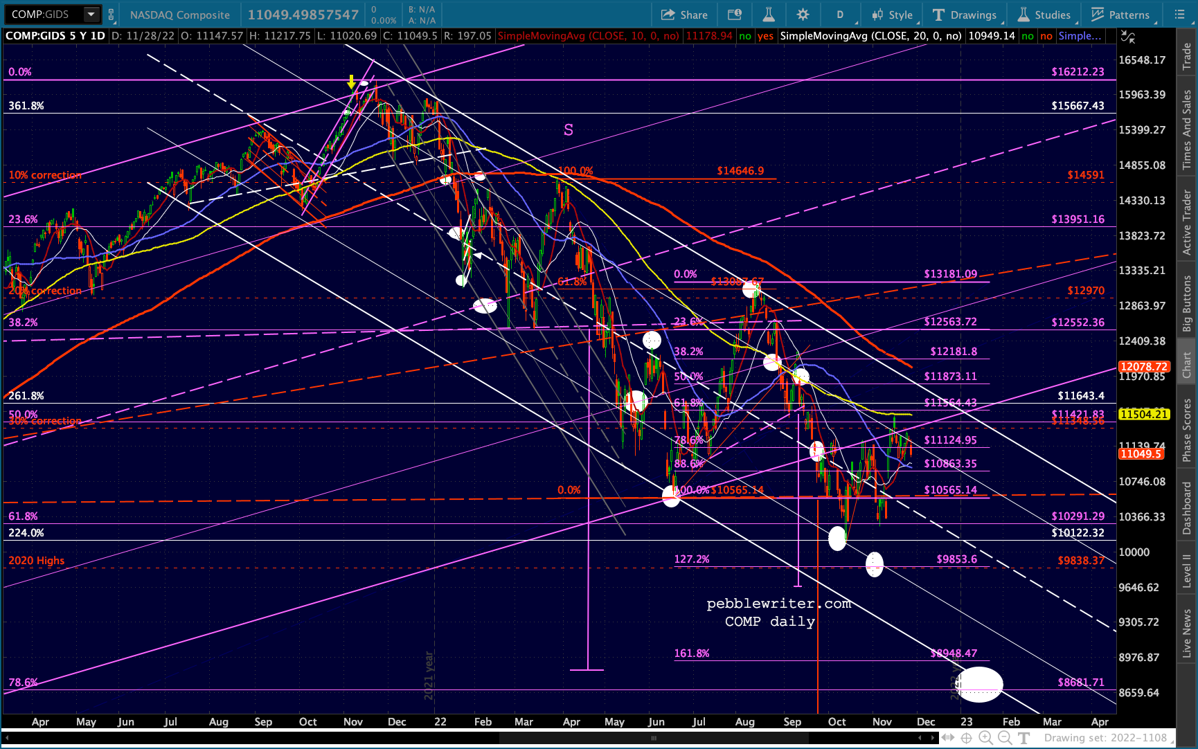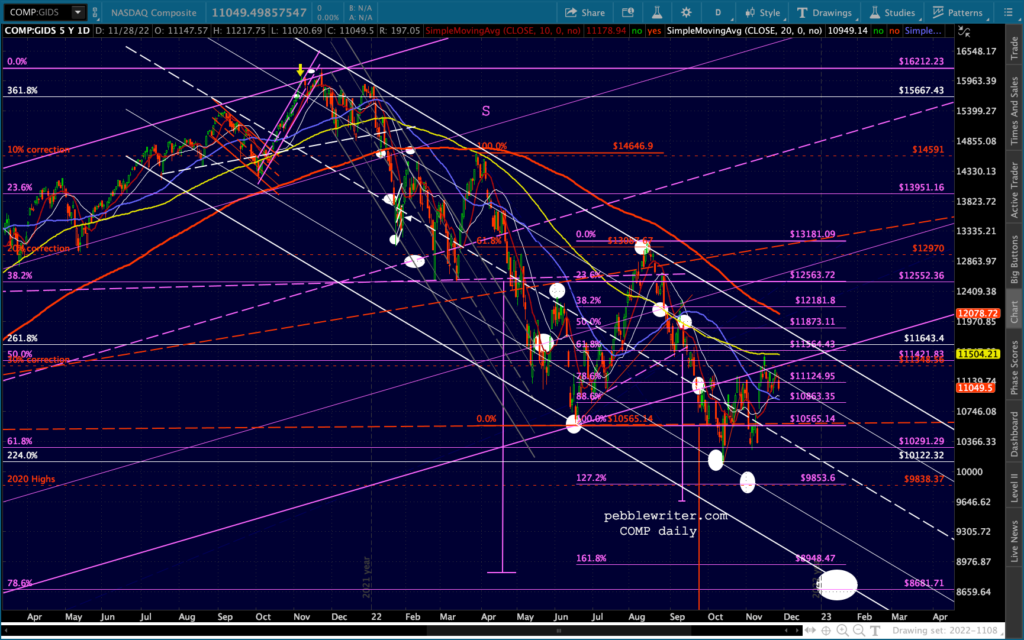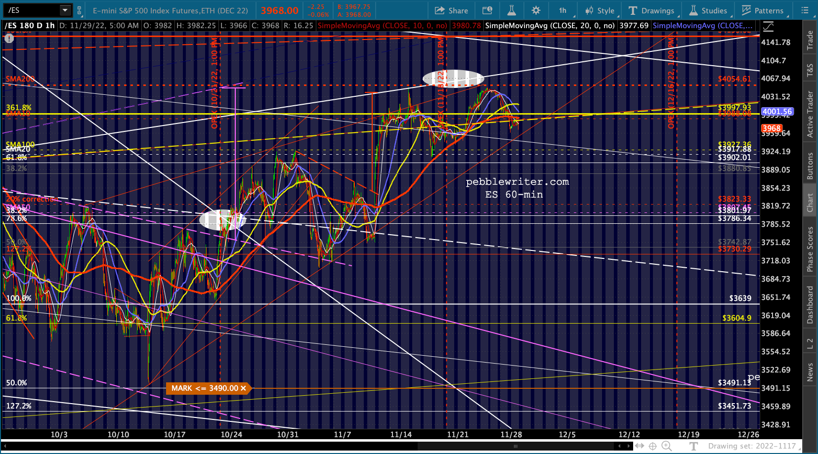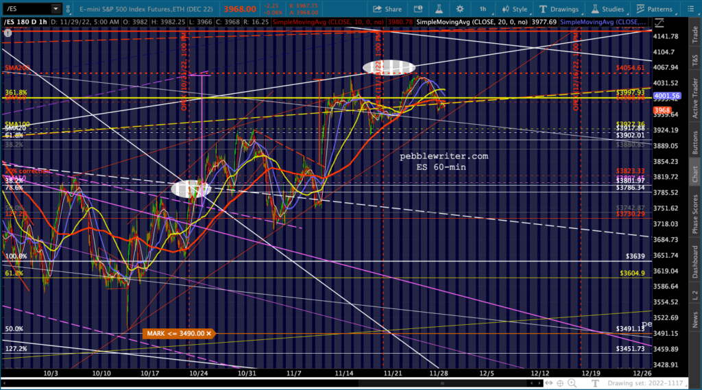 continued for members…ES is approaching a test of its TL off the Oct 13 lows. If it holds, we could get that Santa Claus rally typical of this time of year. Otherwise, there will be plenty of lumps of coal to go around.