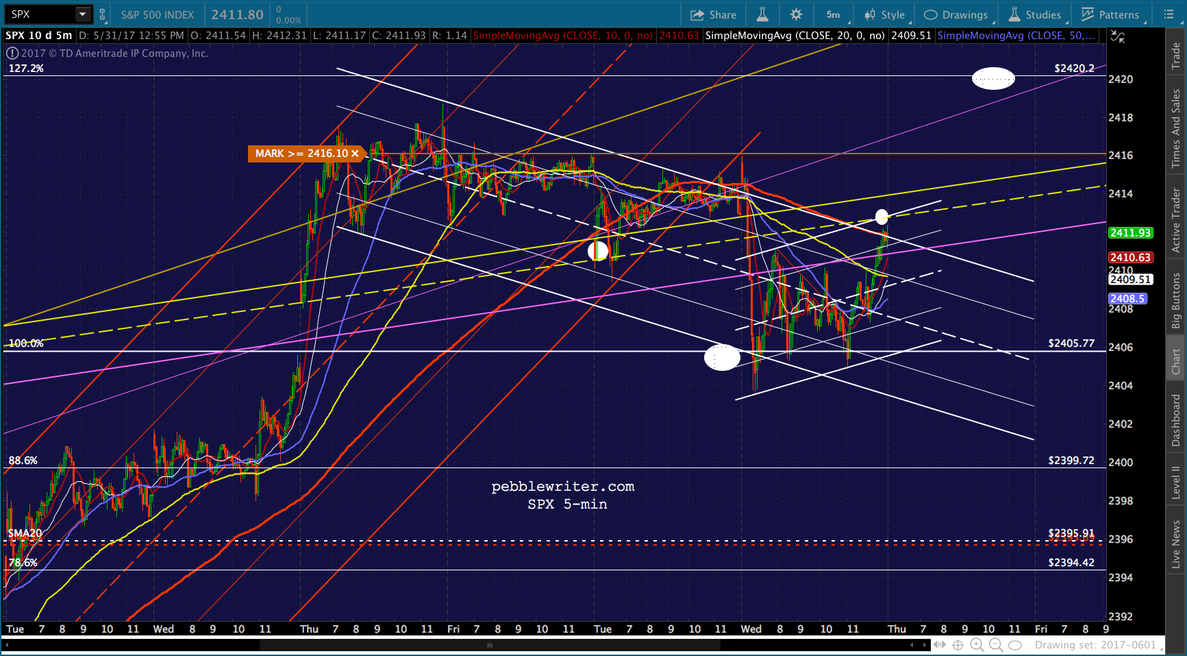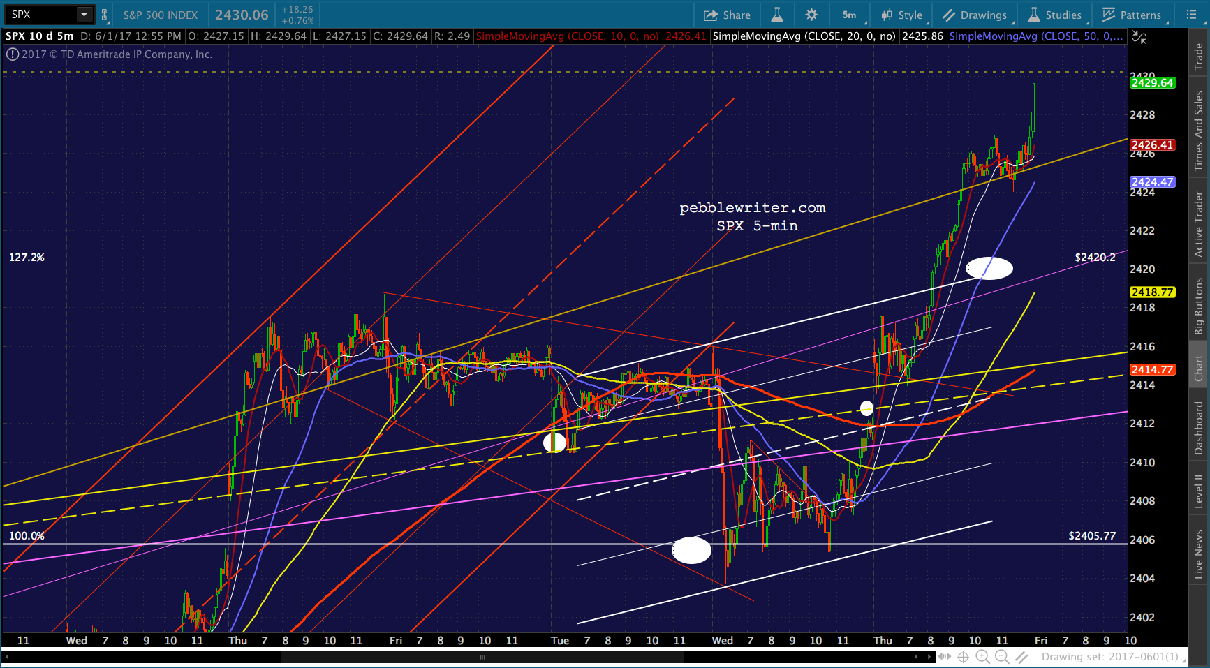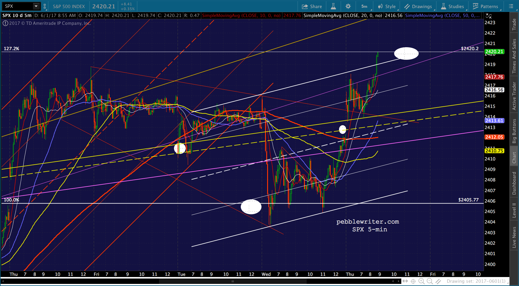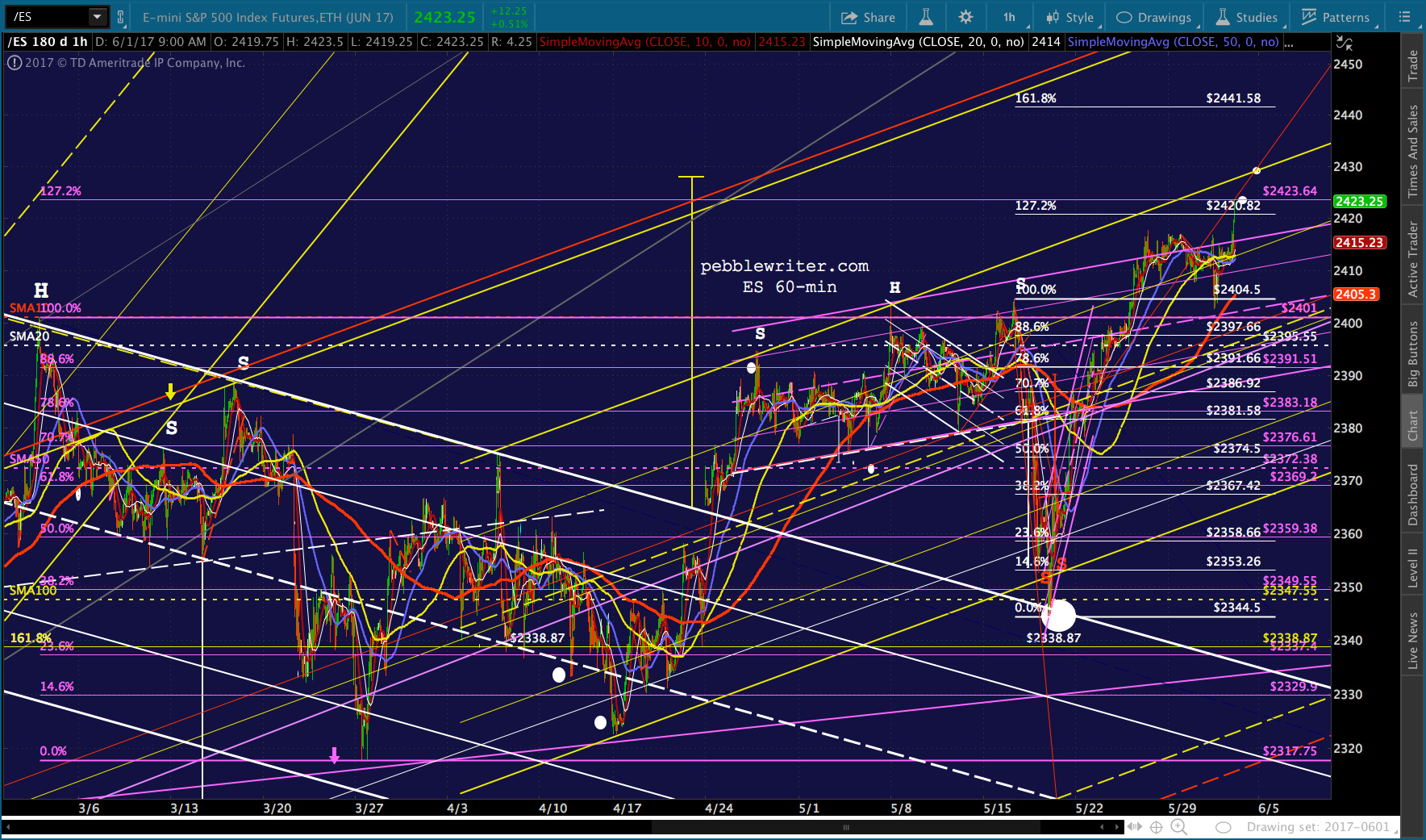 A reminder: we’re looking for 2420.20 (the 1.272) and, if that is broken, the IH&S target at 2430.23. I’m going to duck out for some meetings, and will check back in later.