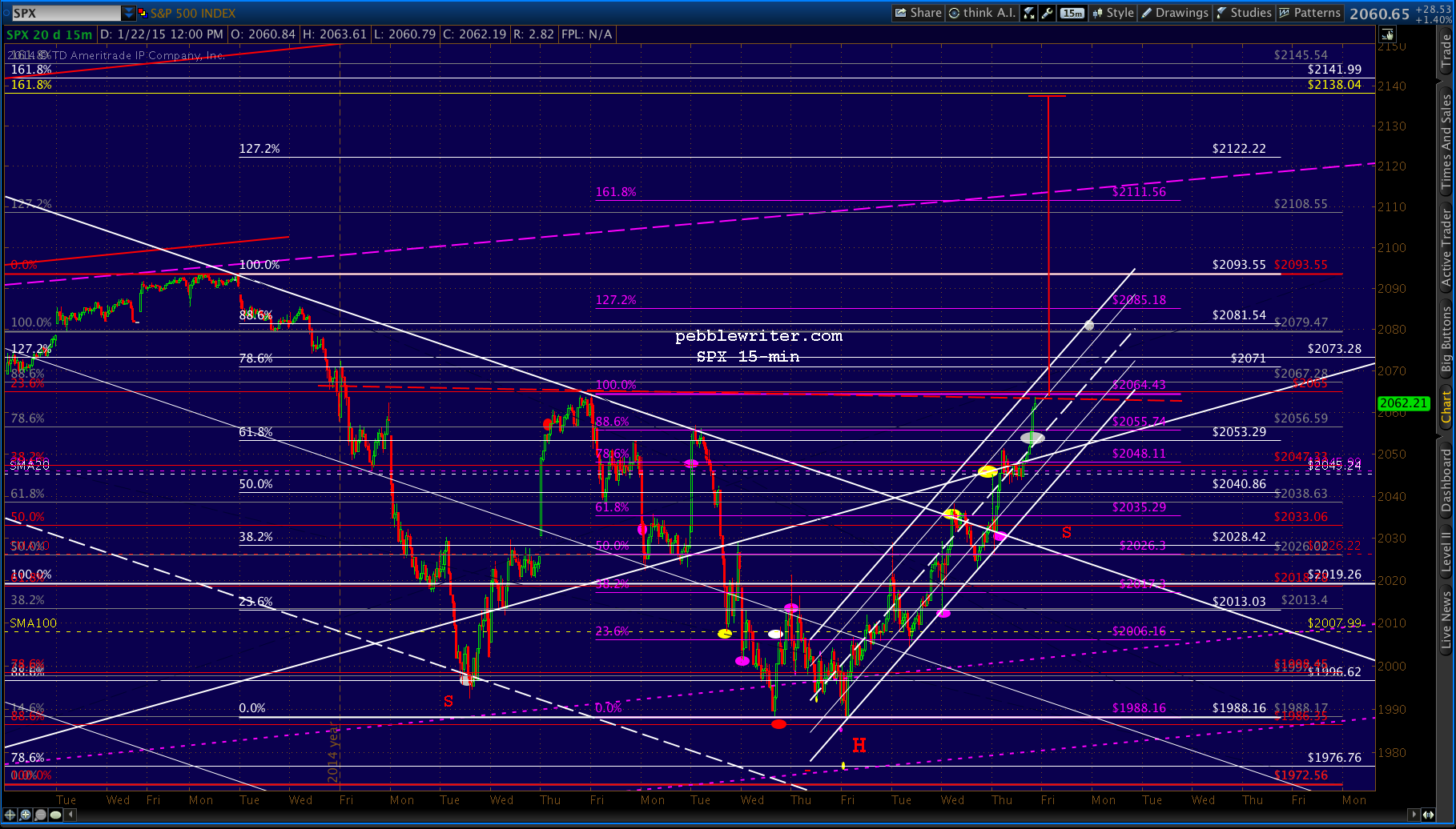 continued for members…Note that the Jan 16 low was slightly lower than the Jan 6 low — setting up a potential IH&S Pattern. If SPX decided to put in a reversal here of more than a few points, — creating a right shoulder to go with the head and left shoulder, it would target the yellow 1.618 at 2138. Just saying…