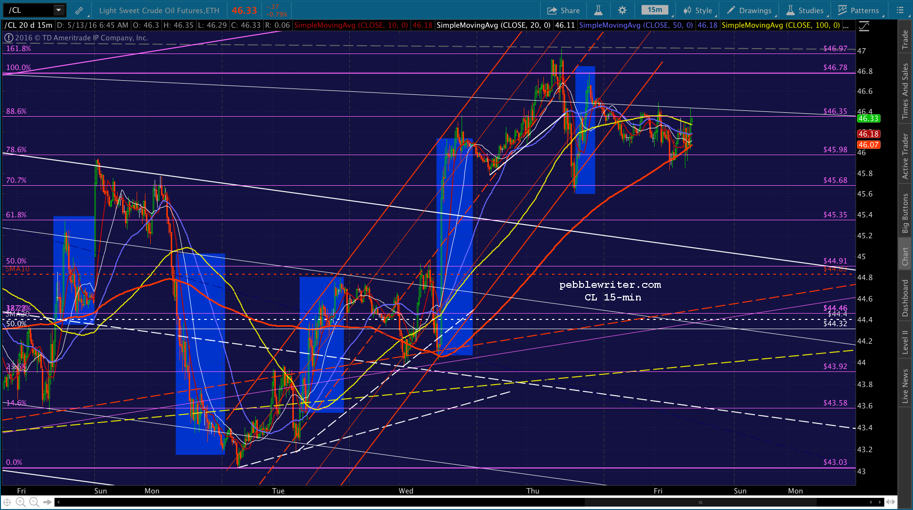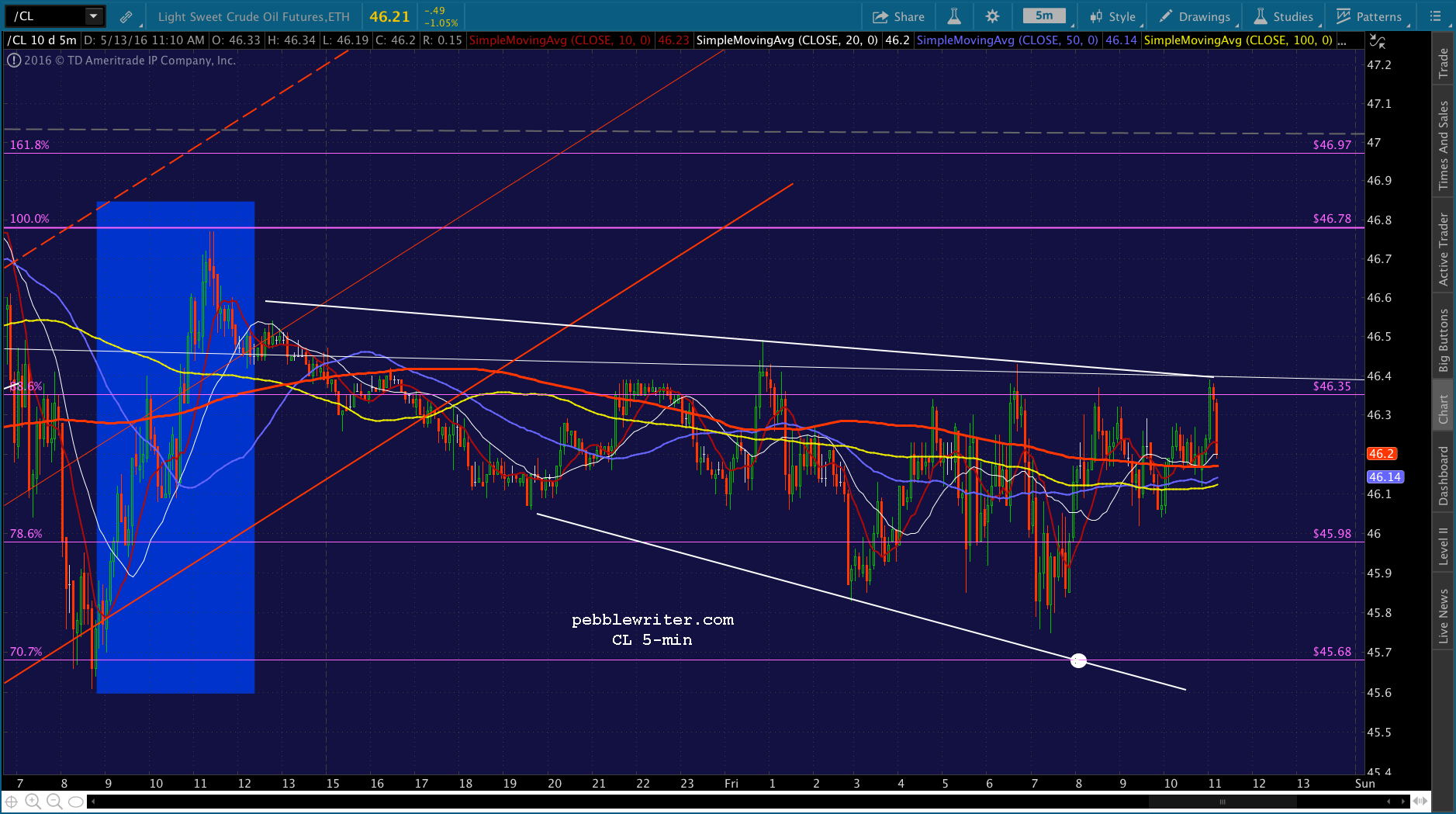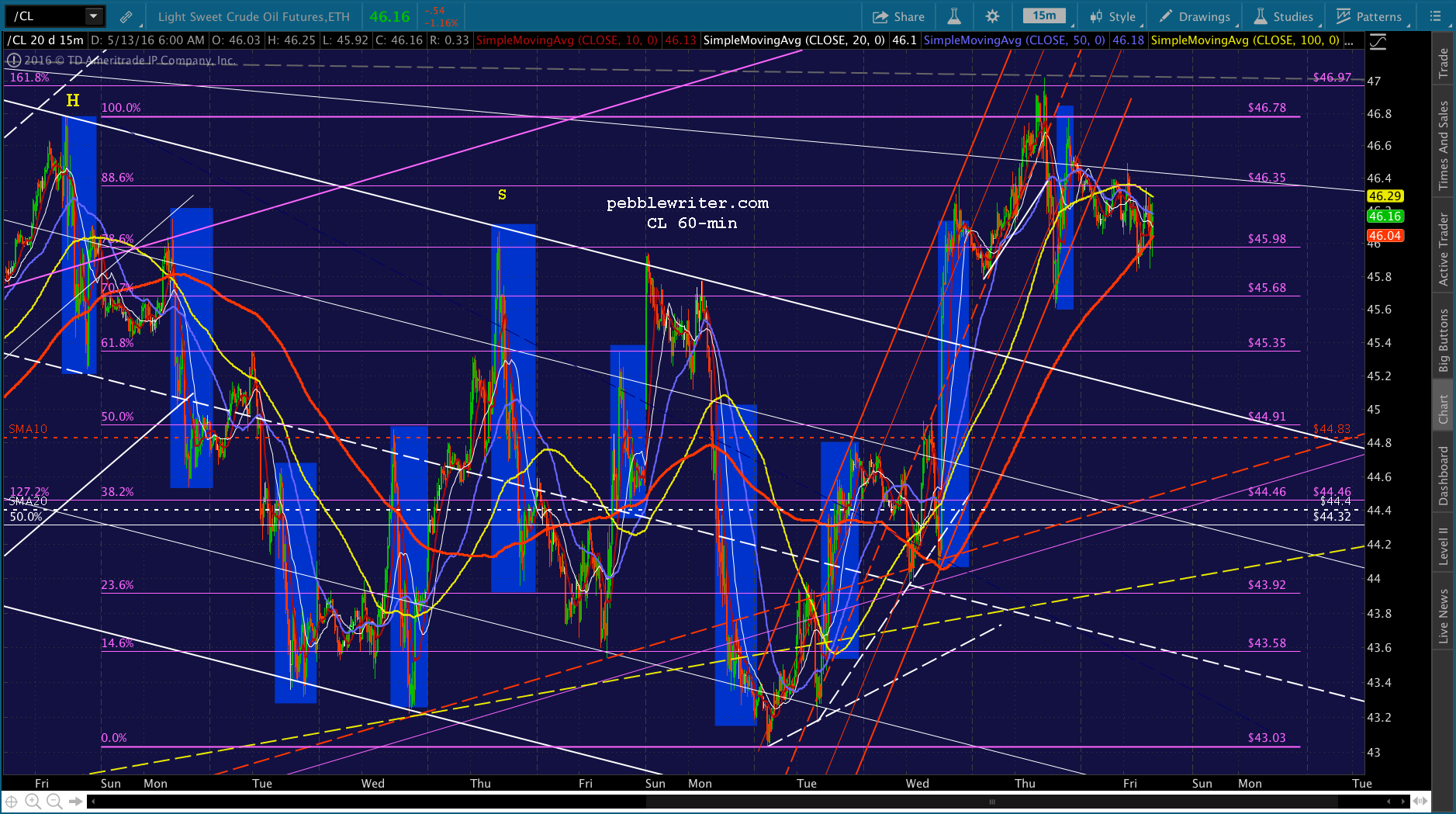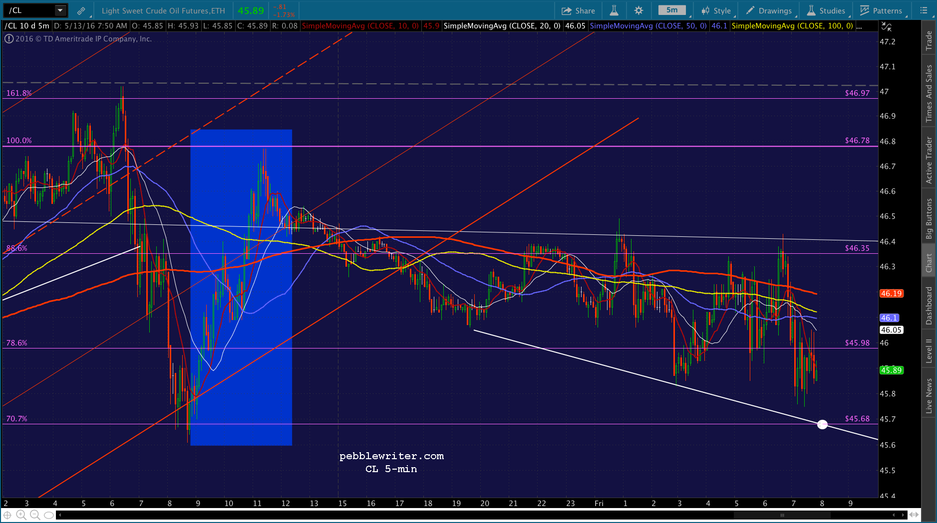 If you can wait it out, CL seems to be headed for 45.68. I still see USDJPY dropping to backtest the wedge. Together, those point to lower prices as described above.