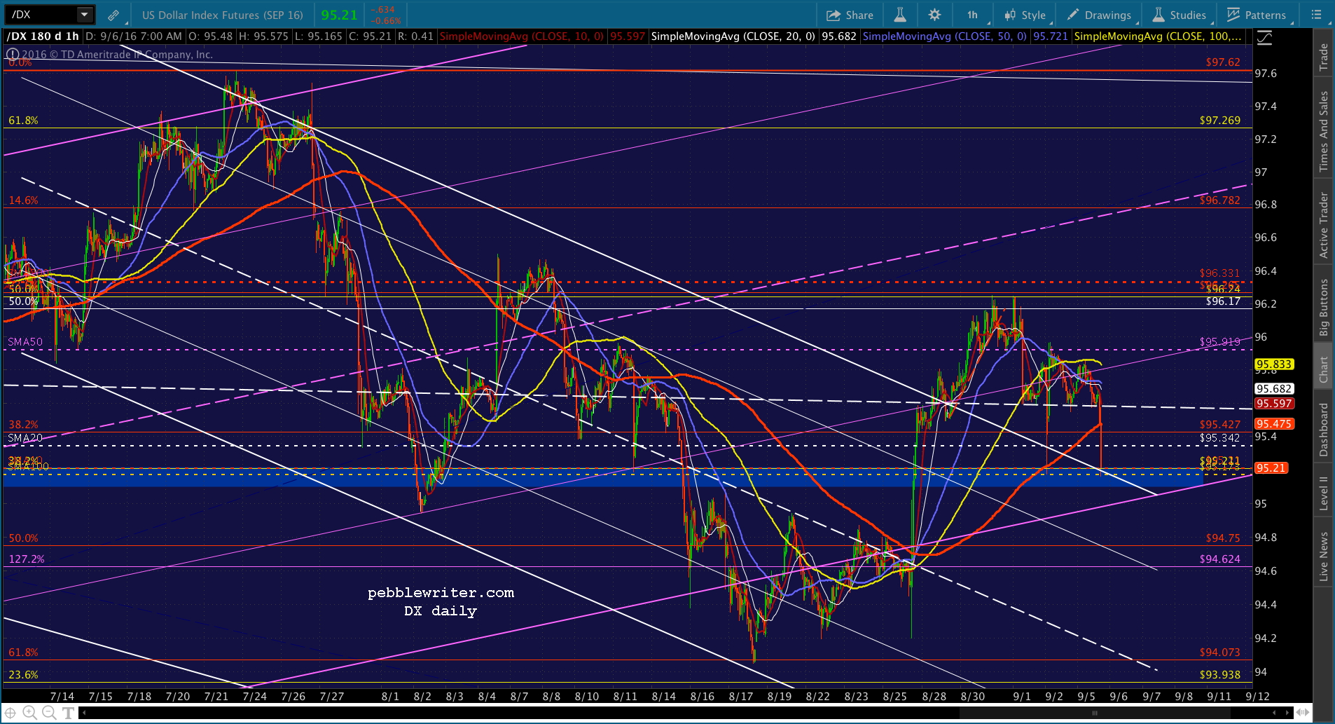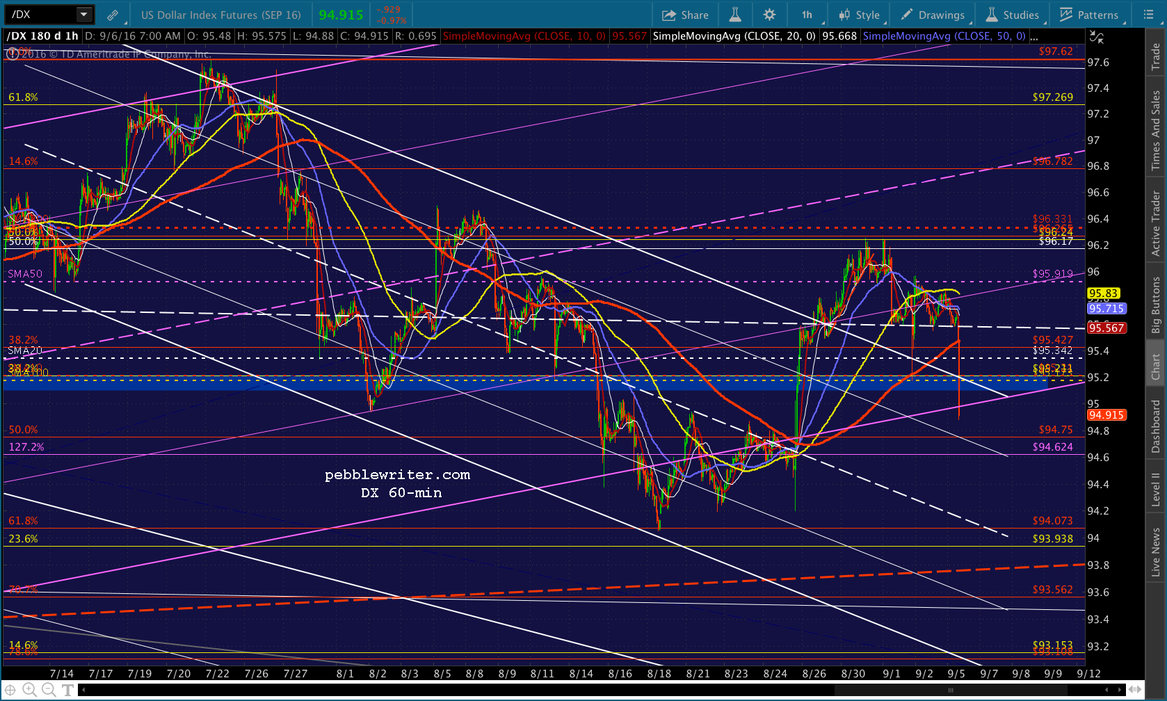 Note that DX is dropping through some pretty important support. Will we get 93.108 after all?