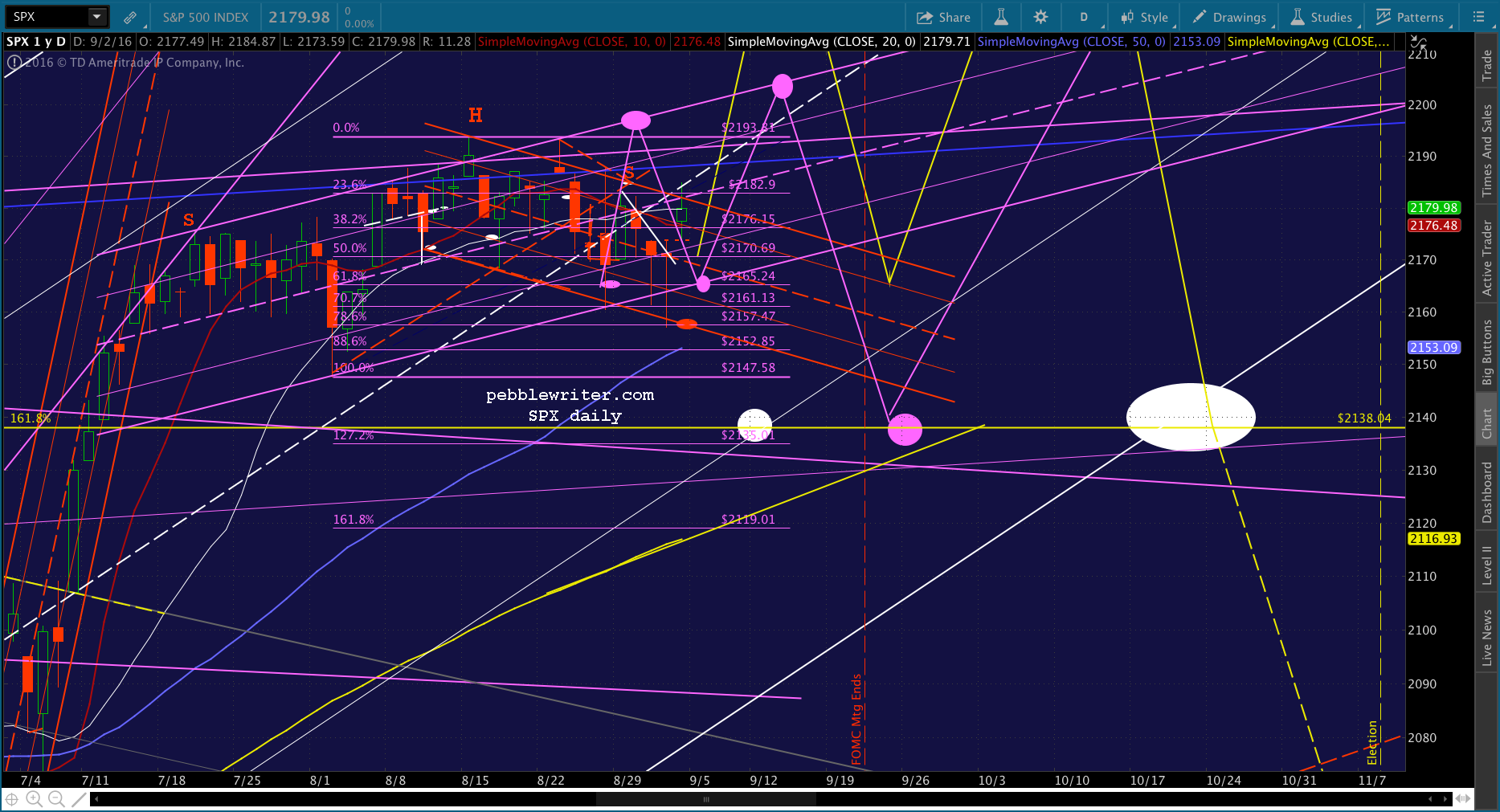 So far, the purple channel has held pretty well. The biggest questions remain: (1) whether the Fed will or won’t raise rates, and (2) whether or not we’ll get a 2138 backtest before then (the white dot.)