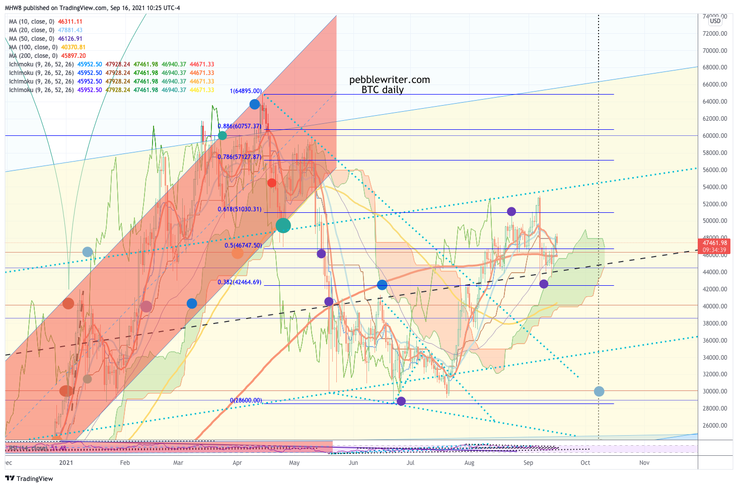 BTC is still above the cloud and SMA200 after tagging both the other day. But, I don’t expect the bounce to last. I’d definitely want to be short below the SMA200 – currently at 45897.60.