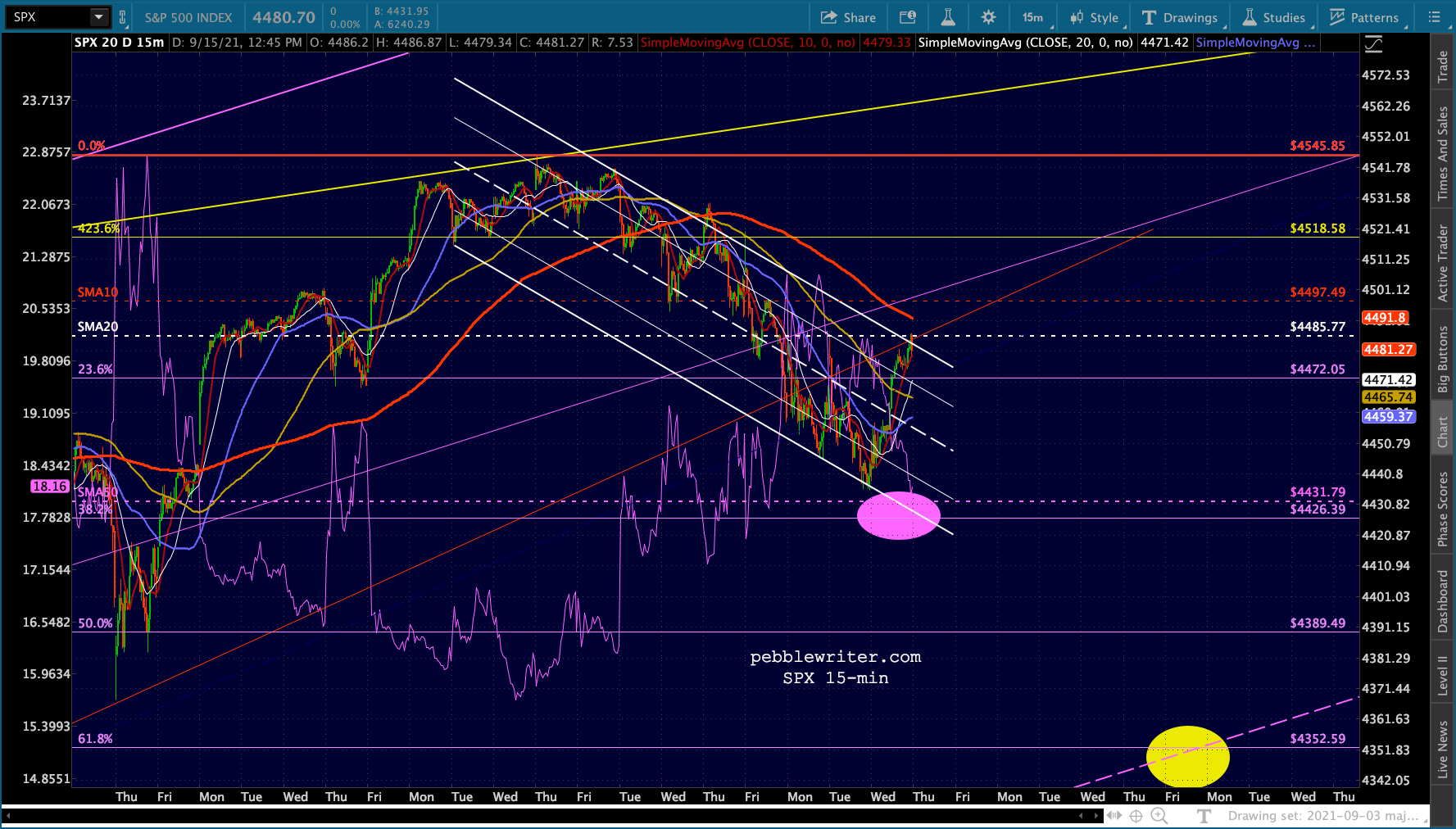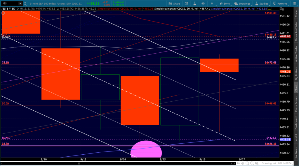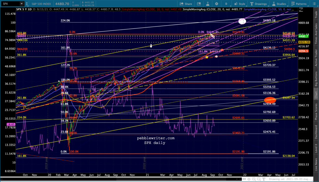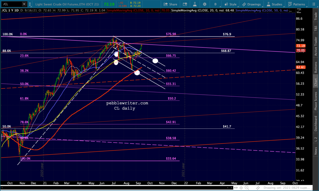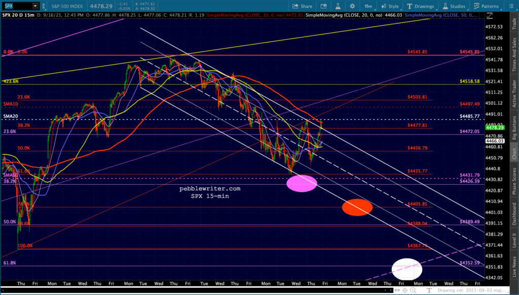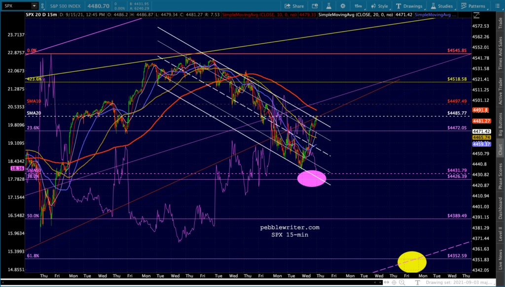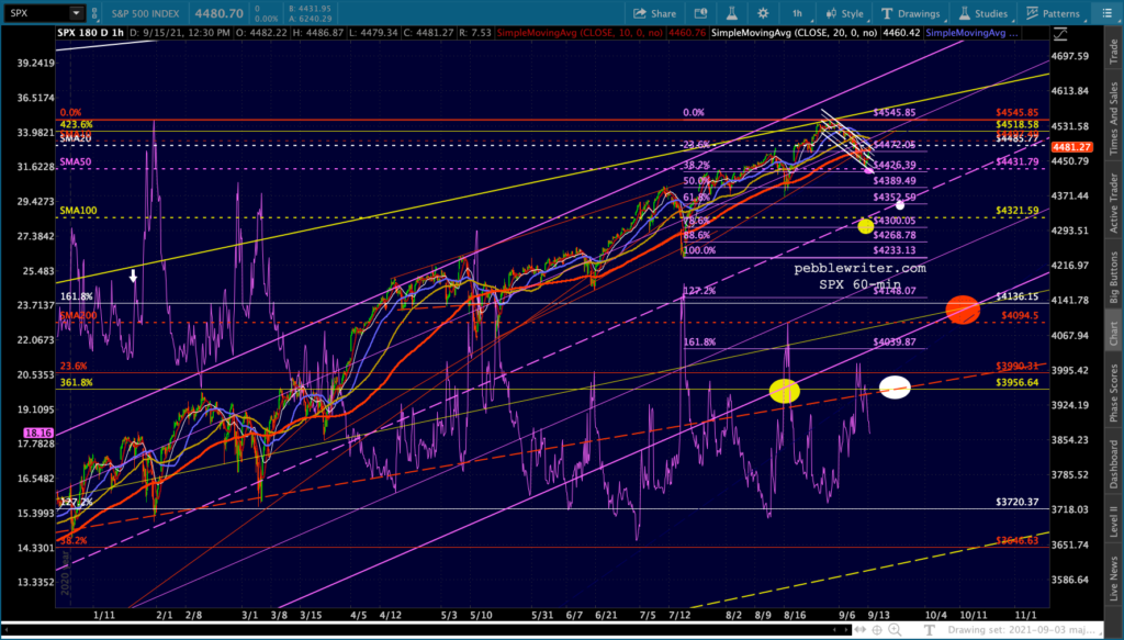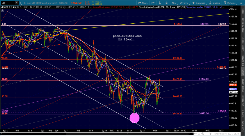 Another one of those days where stocks are all over the map. ES/SPX are back to the top of the falling white channels…