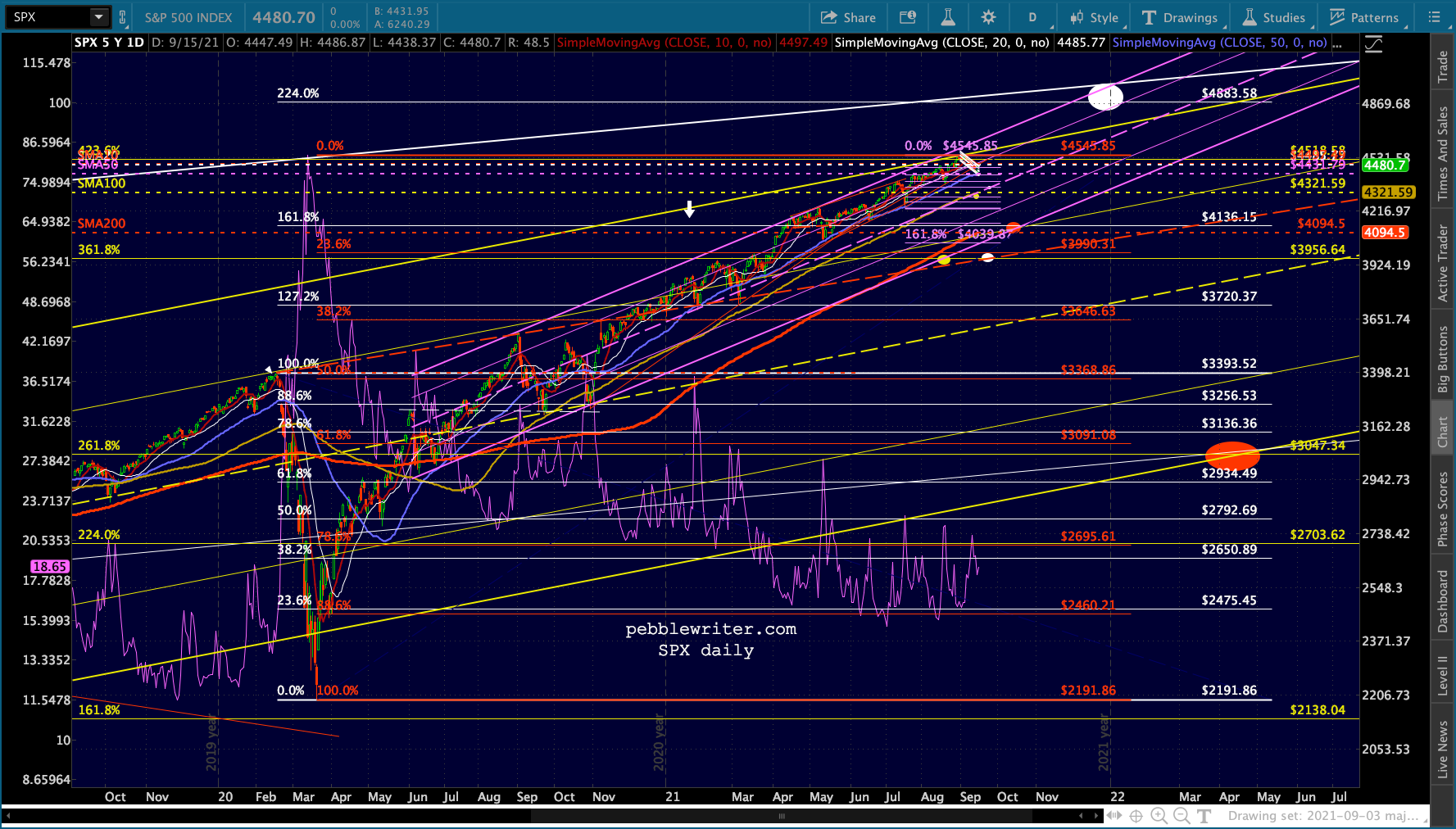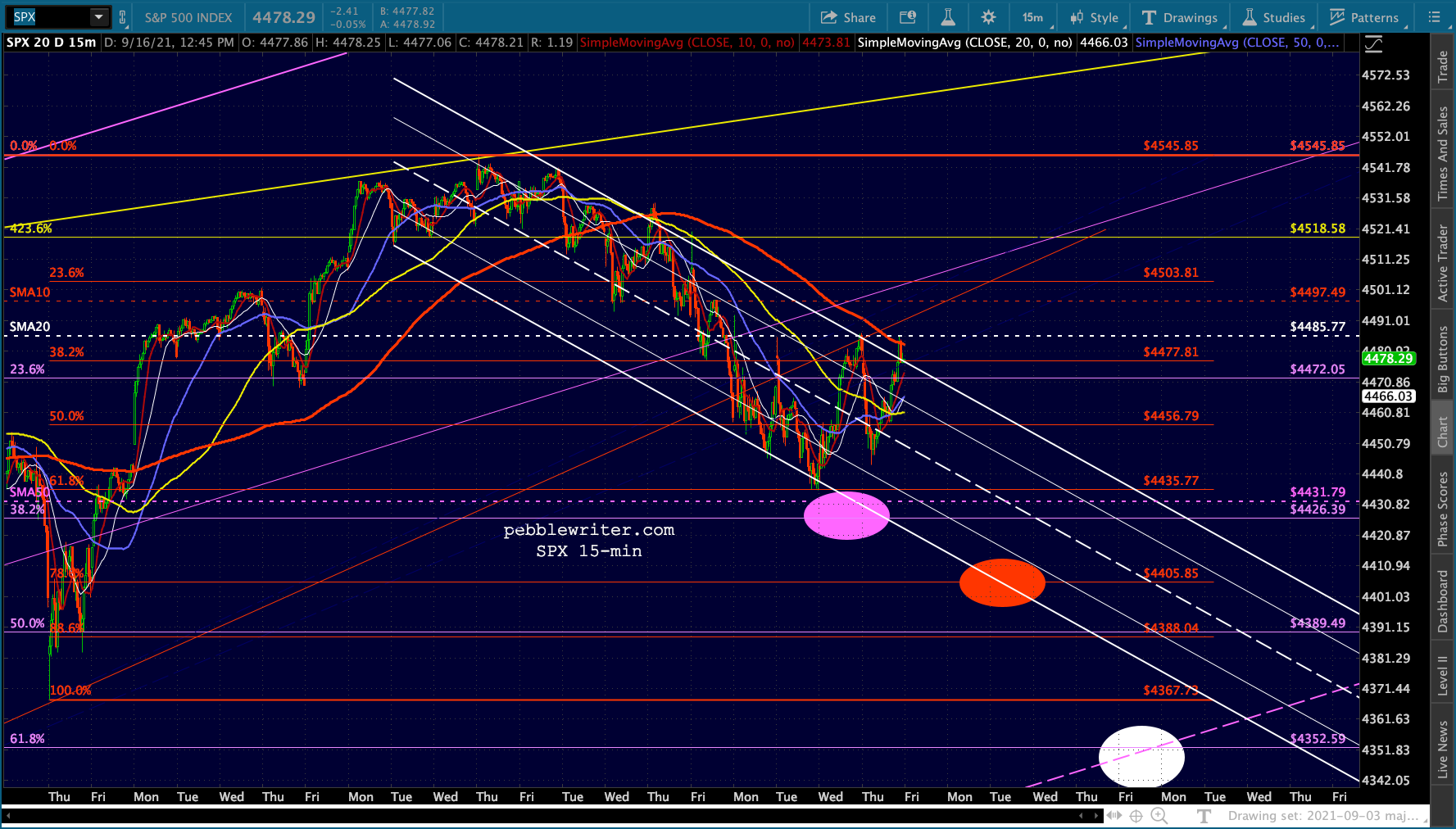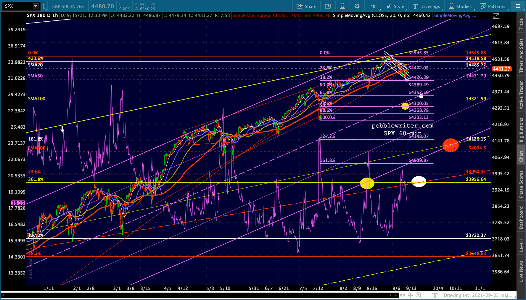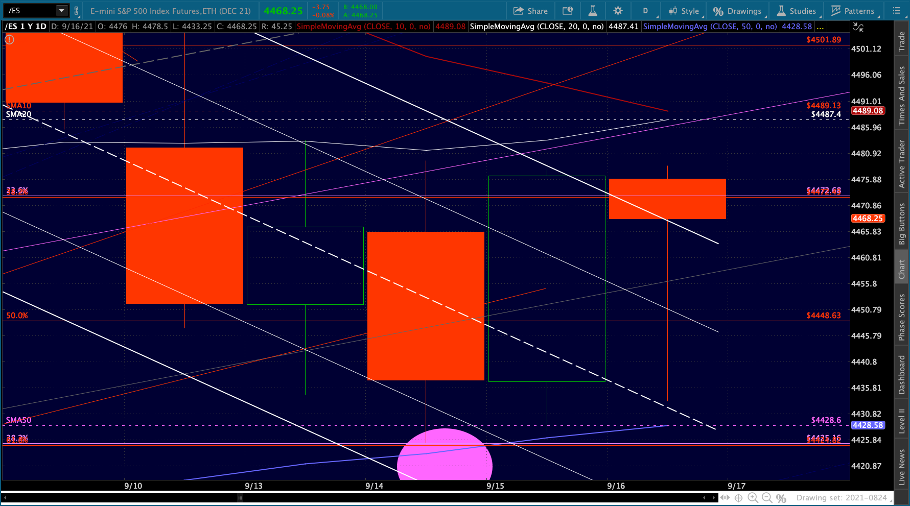 Another one of those days where stocks are all over the map. ES/SPX are back to the top of the falling white channels…