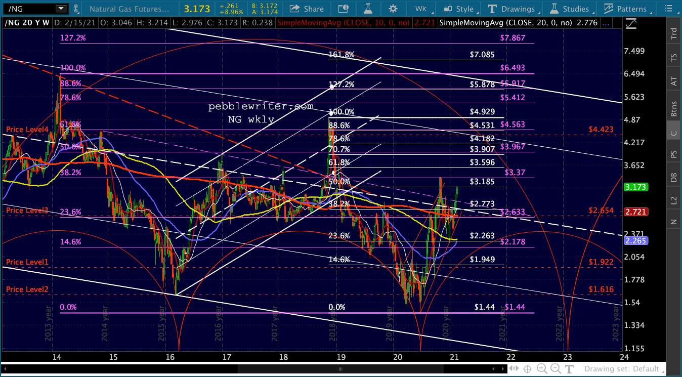 The channel had been well-defined until its Jun 2020 low failed to tag the channel bottom. It has been quite a while since it tagged the channel top. In Feb 2014 and Nov 2018, NG managed to tag the channel’s .786 line after pushing briefly past the midline.