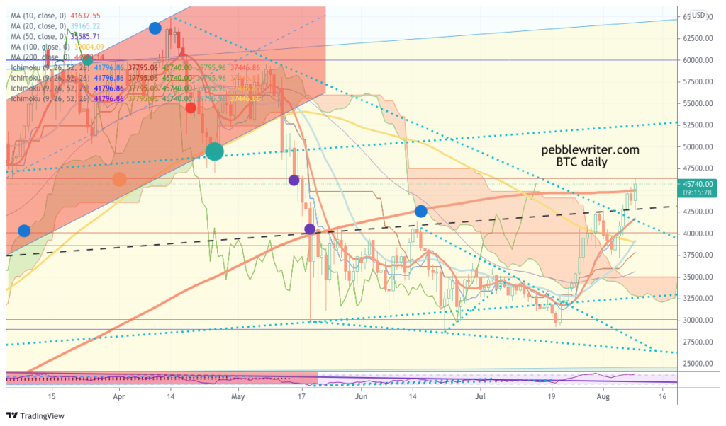 BTC, having broken out of the cloud, is testing the SMA200 again. A breakout would be very positive.