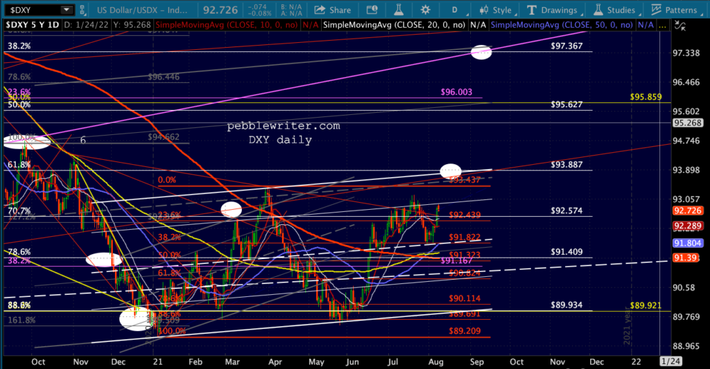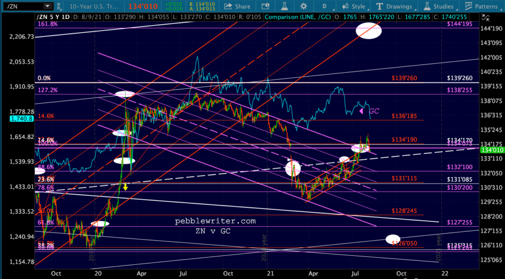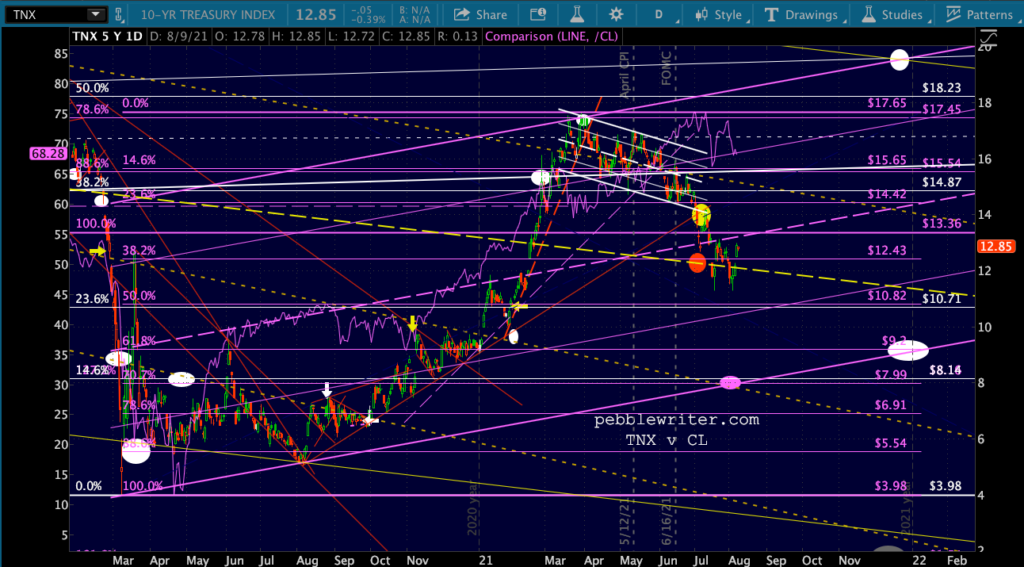 Like the ZN chart, TNX continues to vacillate – with a growing gap between itself and CL.