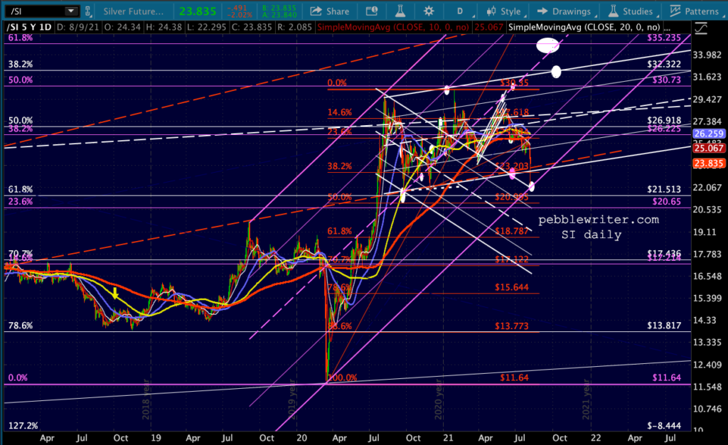 If this rising purple channel breaks down, then it could really accelerate with 18.78 a reasonable target. If the channel holds, then it still has potential to 35.23.