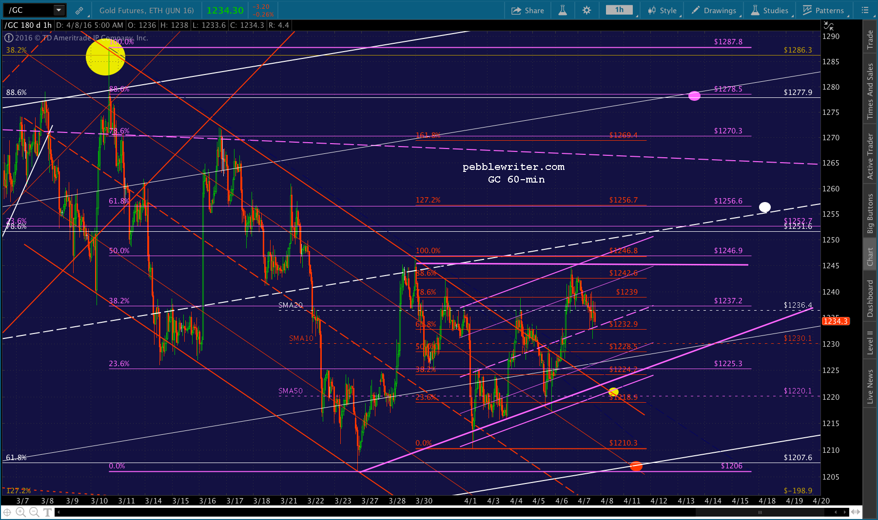 Note that the SMA50 would also represent a backtest of the red channel it recently broke out of. If that doesn’t hold, then the white channel bottom around 1207 makes sense.