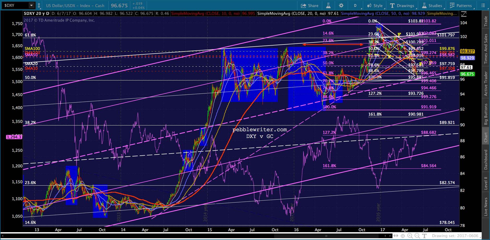 My target for DXY has been 96.10 as early as next week (coincides with the FOMC decision.) This is also the time frame for either of the GC targets.
