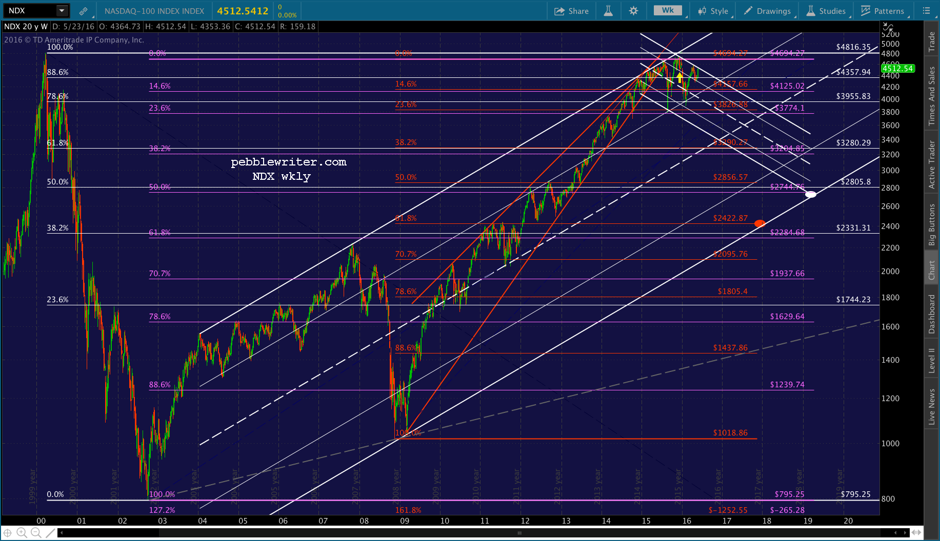 In the end, does it matter? From a chart standpoint, absolutely. Not to be overly dramatic, but if NDX can’t top the falling white channel line and retake 4816, then everything since 2002 has been a very deep retracement.