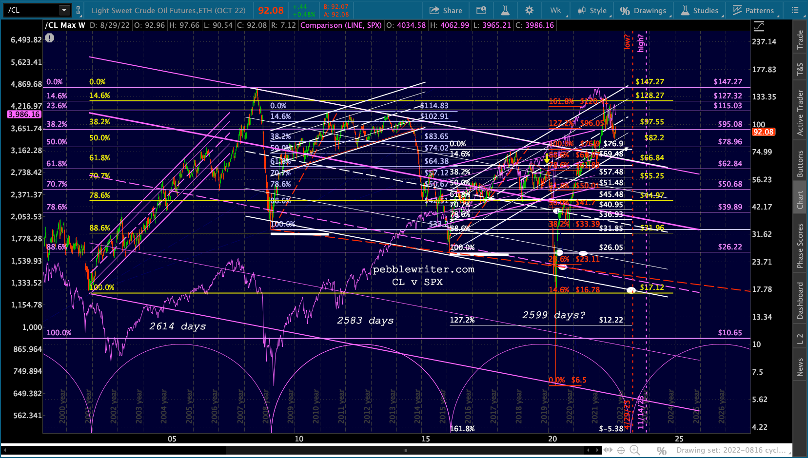 It’s been a while since I displayed this chart, but remember that the CL cycle still shows a downturn by April 2023. Since the 2020 pandemic crash was obviously out of sync with the cycle, the question remains whether the cycle will pick back up where it left off.