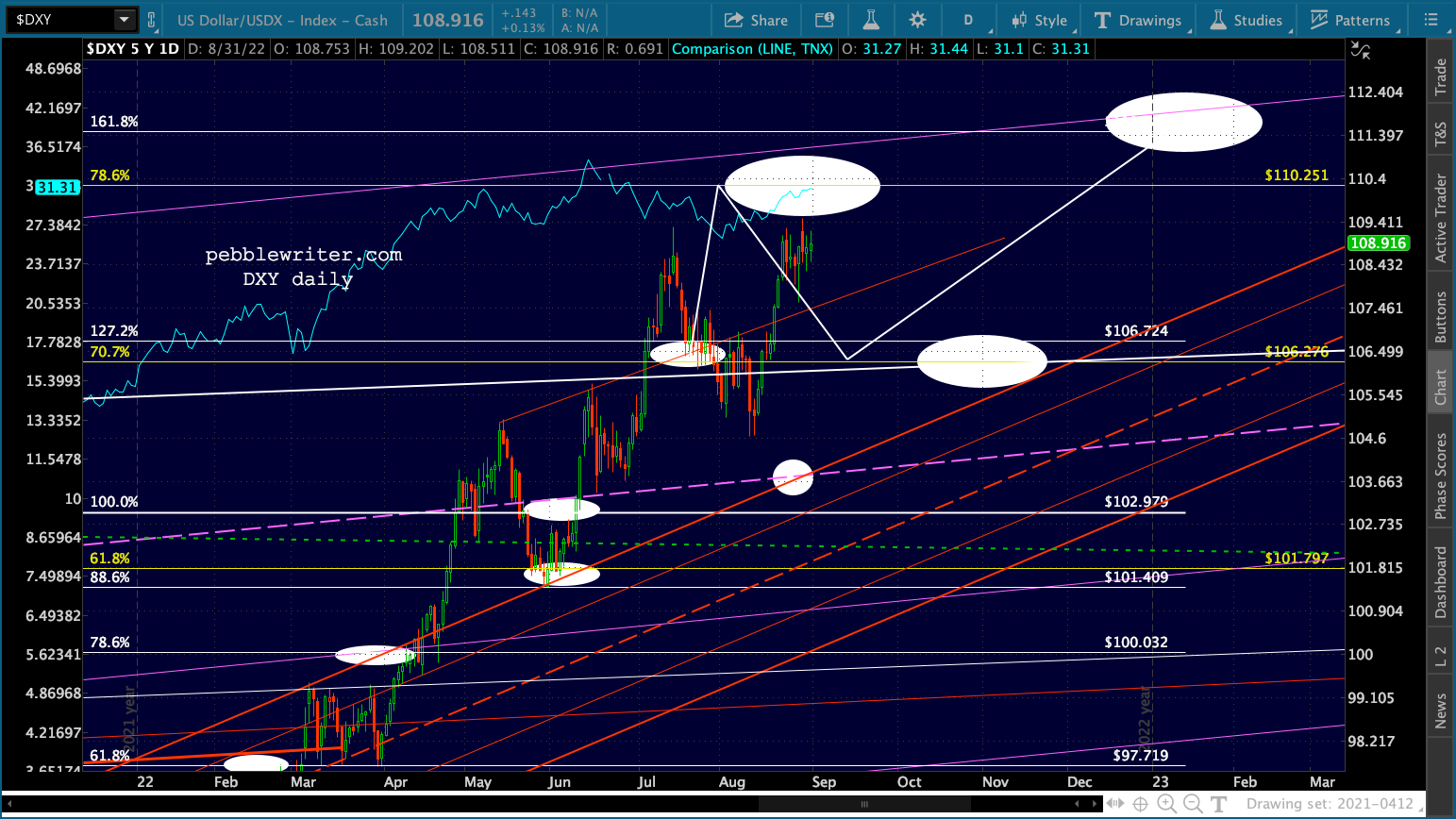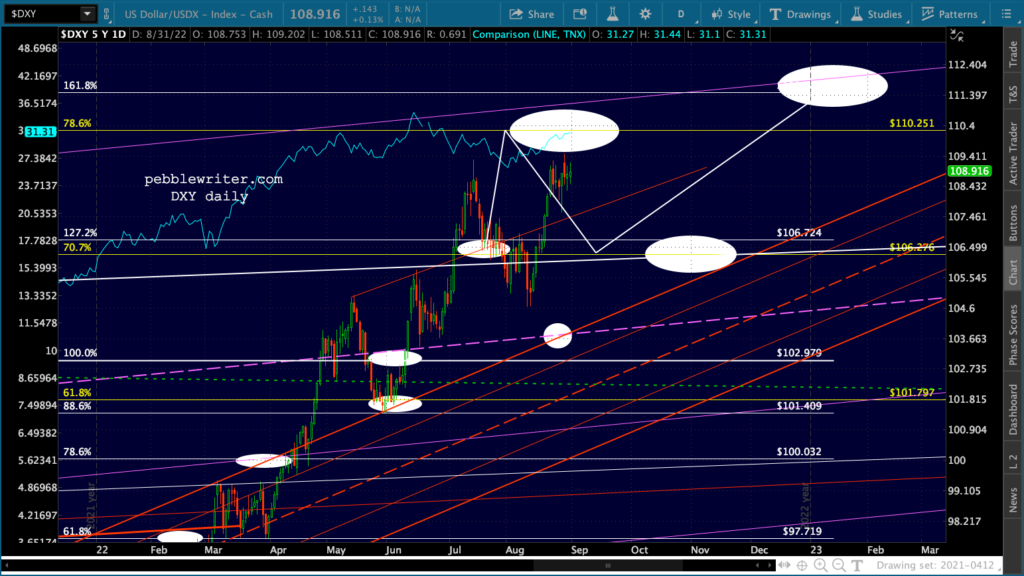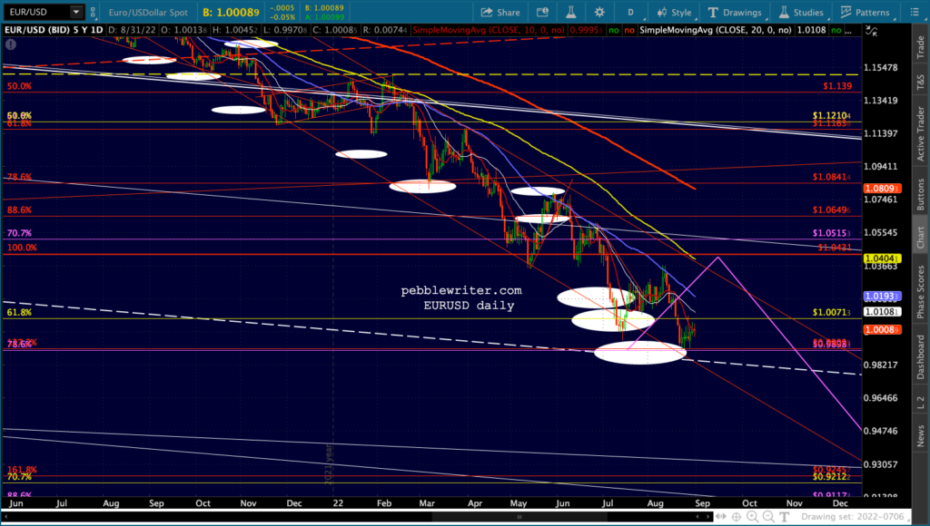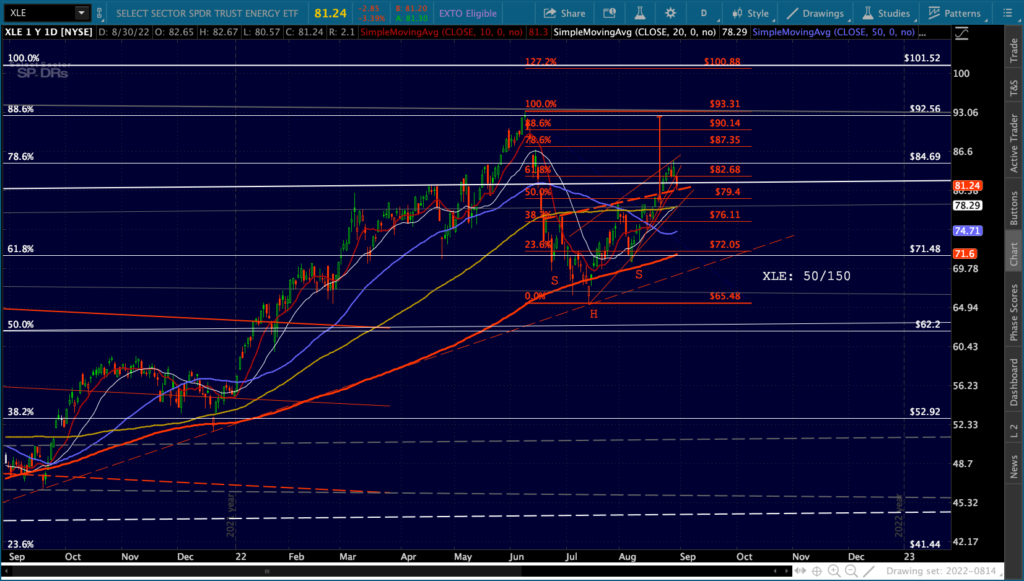 Can they reduce oil and gas prices to also help lower CPI? The rising dollar should help. Judging from the nice, clean falling channel from the June highs, they have had cooperation from the Saudis – probably stemming from whatever horse trading Biden did during his recent visit.