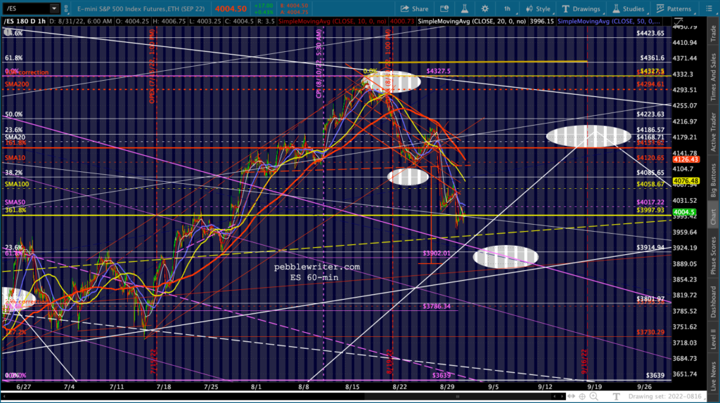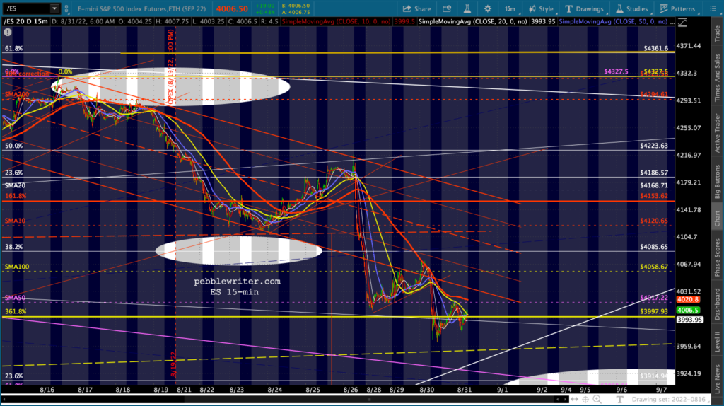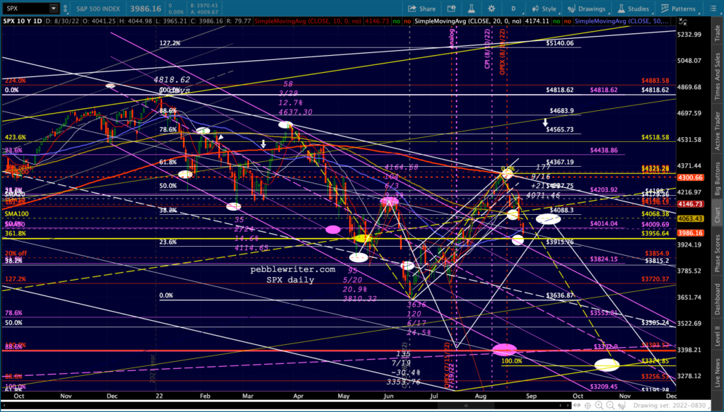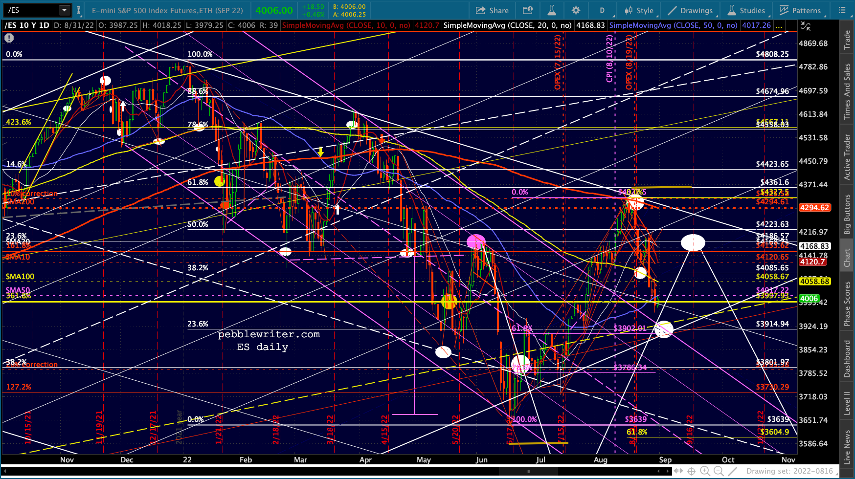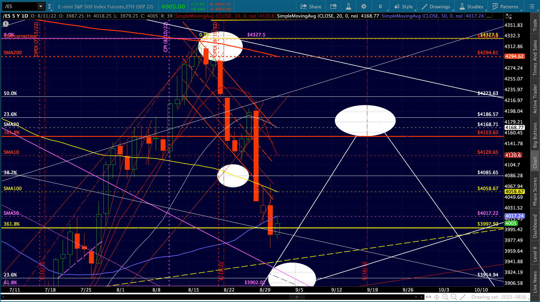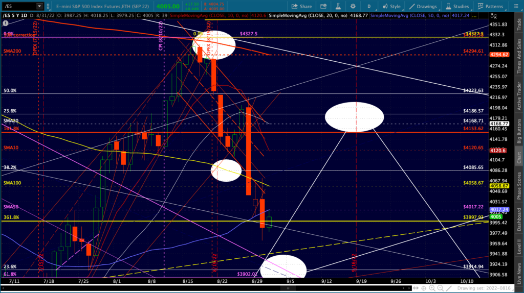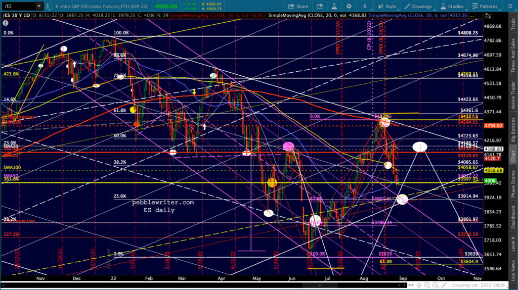 The big picture for ES and SPX shows more downside following a backtest of the SMA50s.