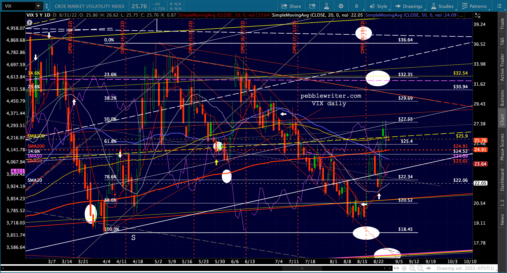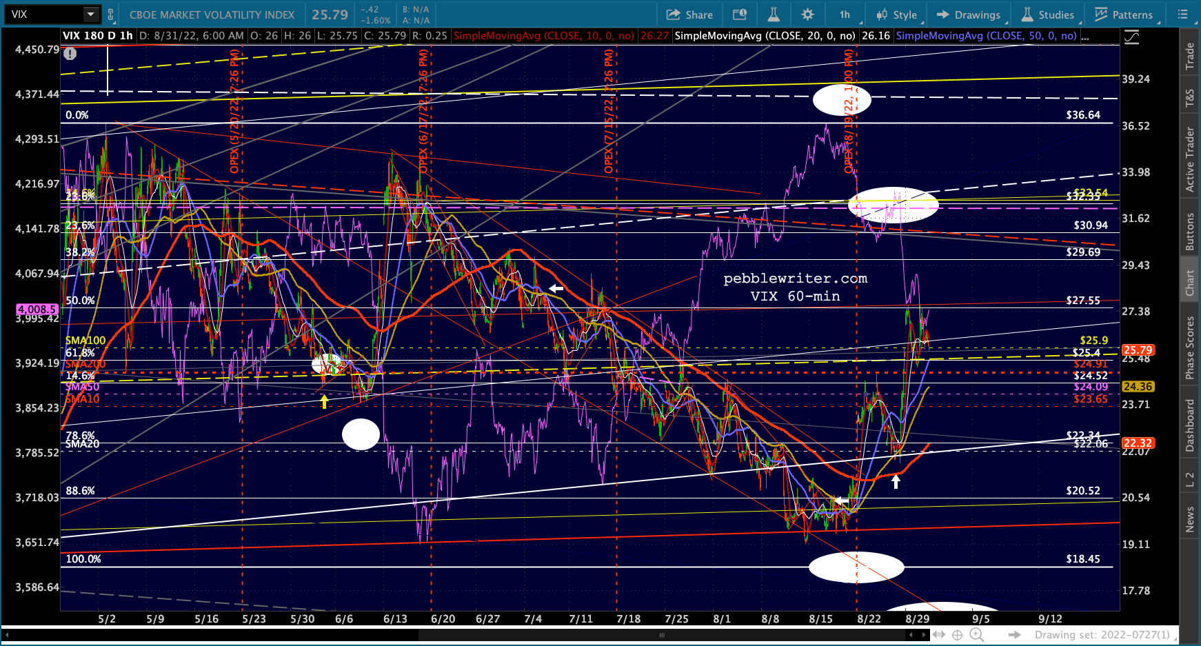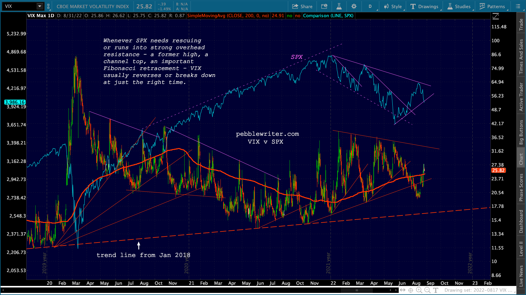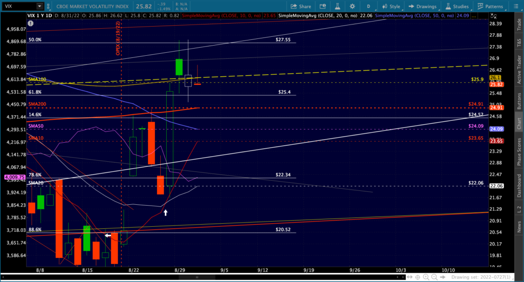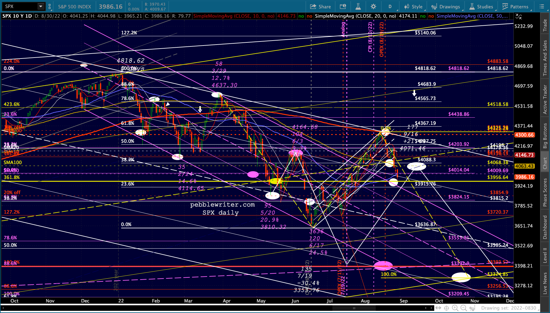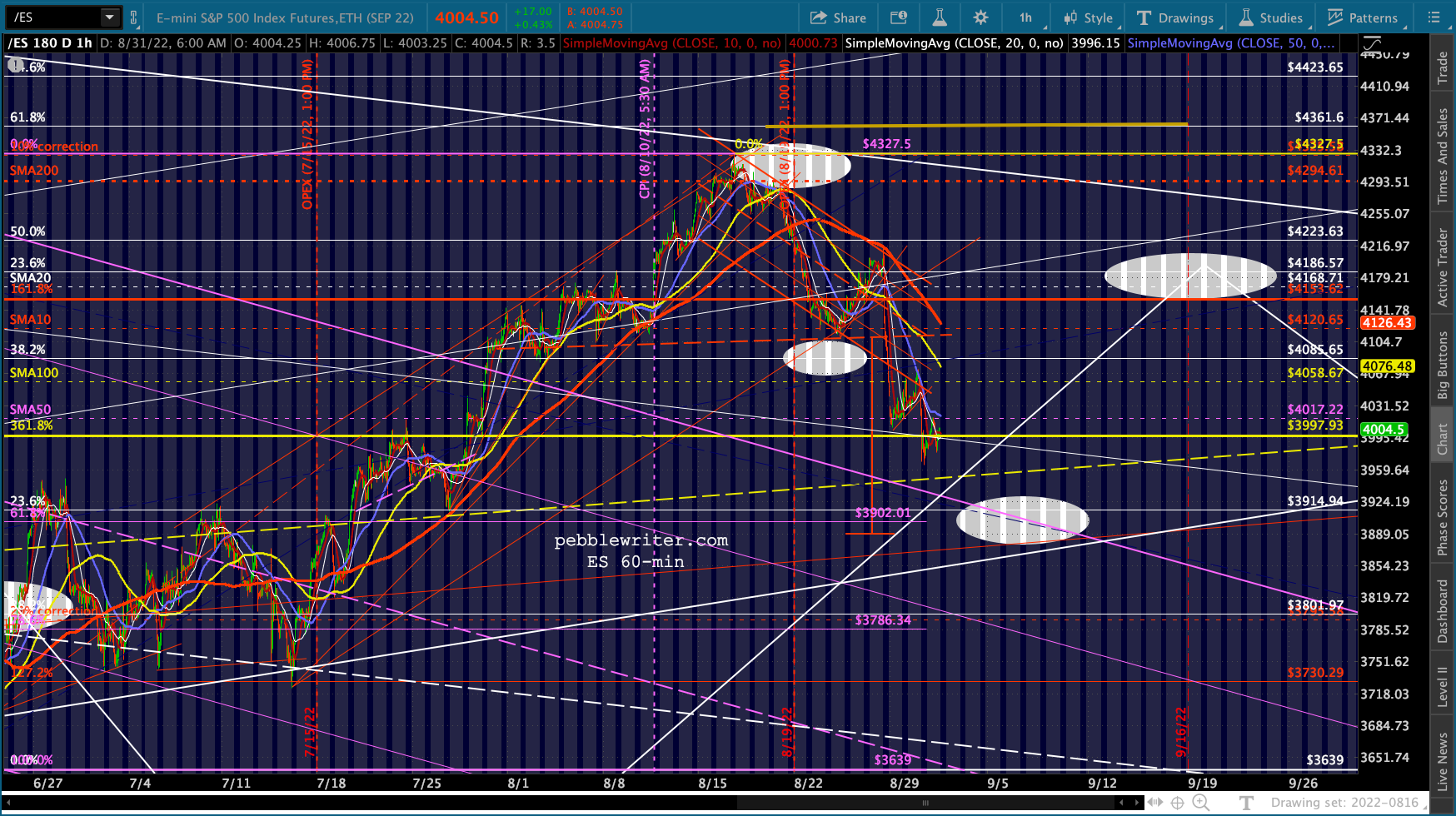 The big picture for ES and SPX shows more downside following a backtest of the SMA50s.