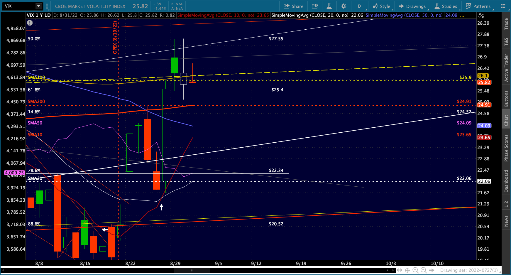 As it stands right now, VIX has made a higher high and higher low, with the SMA200 still below as support and a clear 10/20 cross.