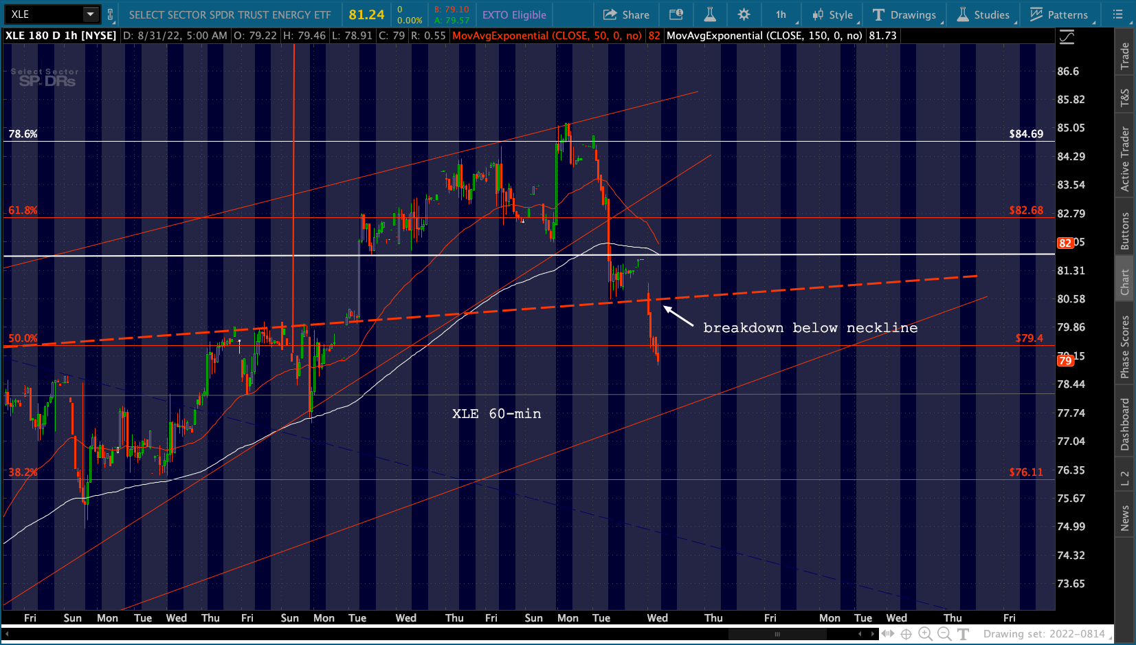 Now, on to oil and gas. The chart that recently caught my eye was the XLE. It recently completed an inverted H&S pattern promising new highs.