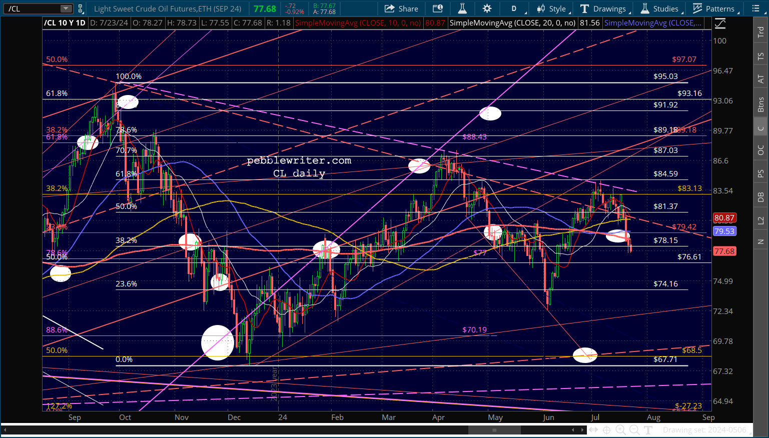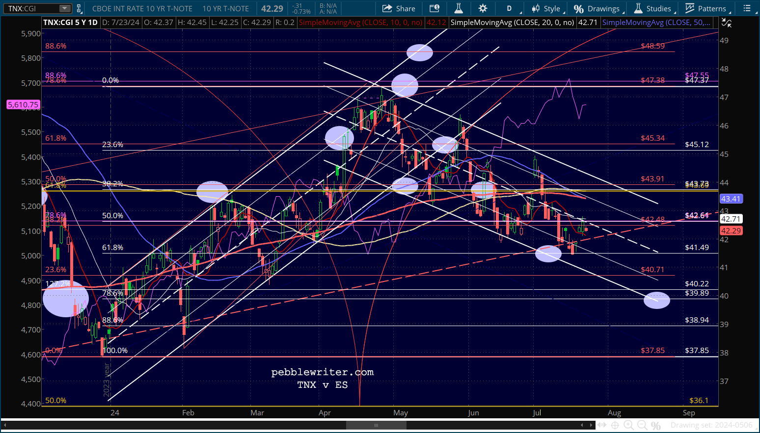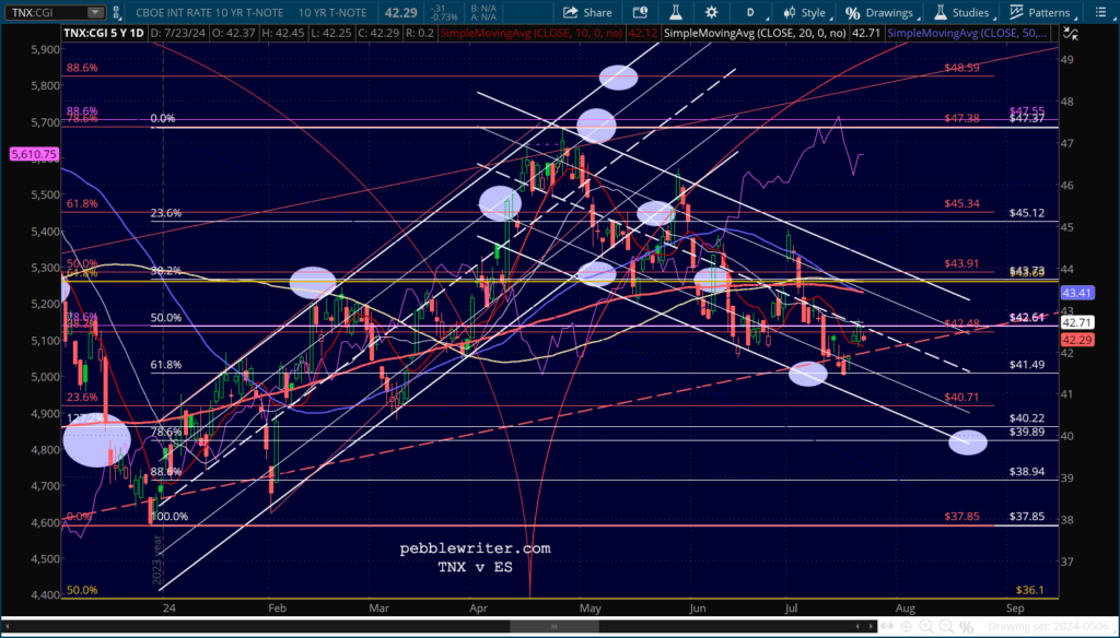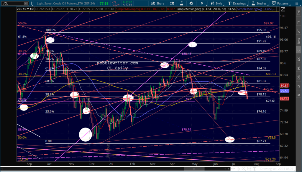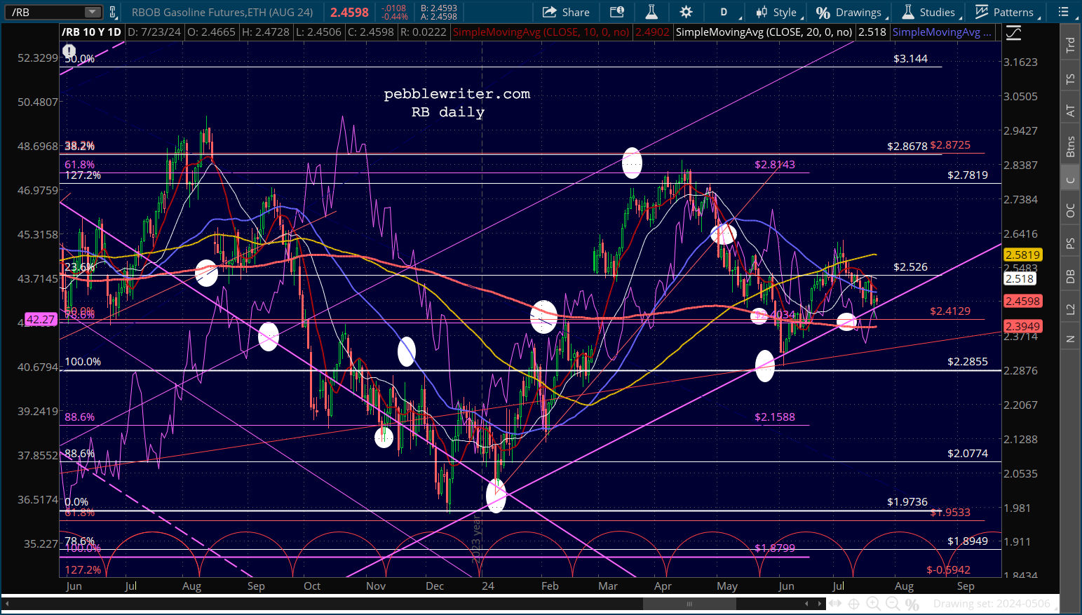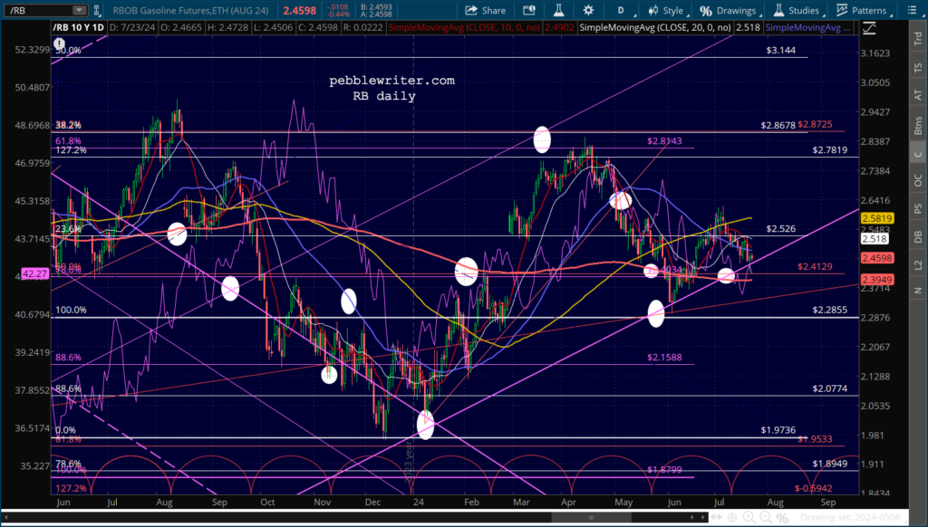 Note that CL and RB are both making lower lows, again taking pressure off the 10Y.