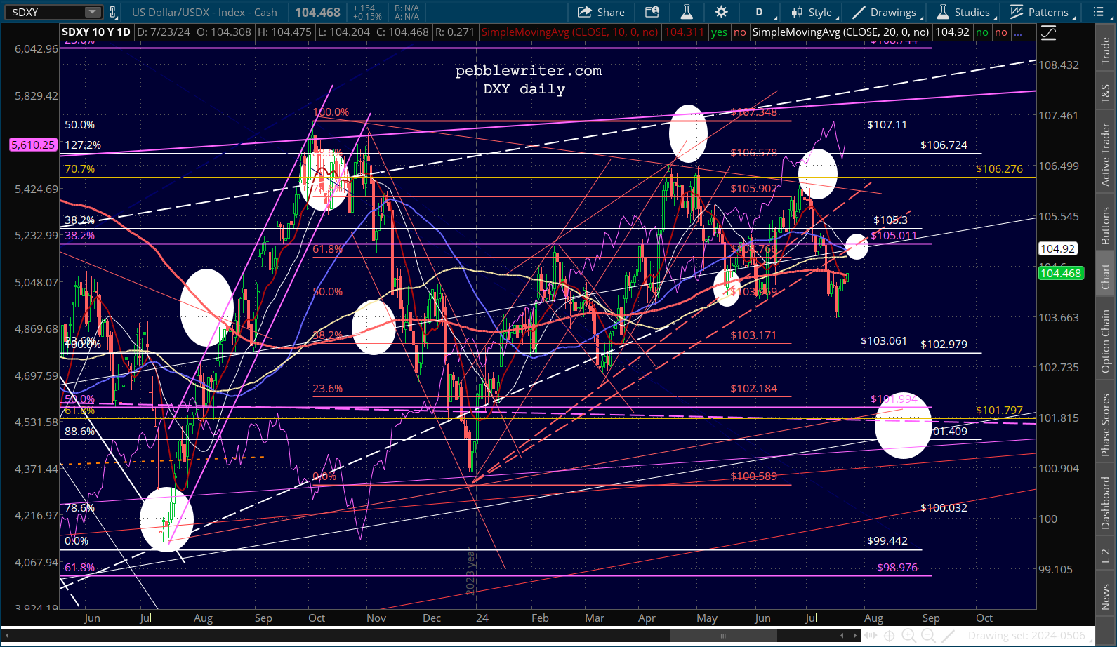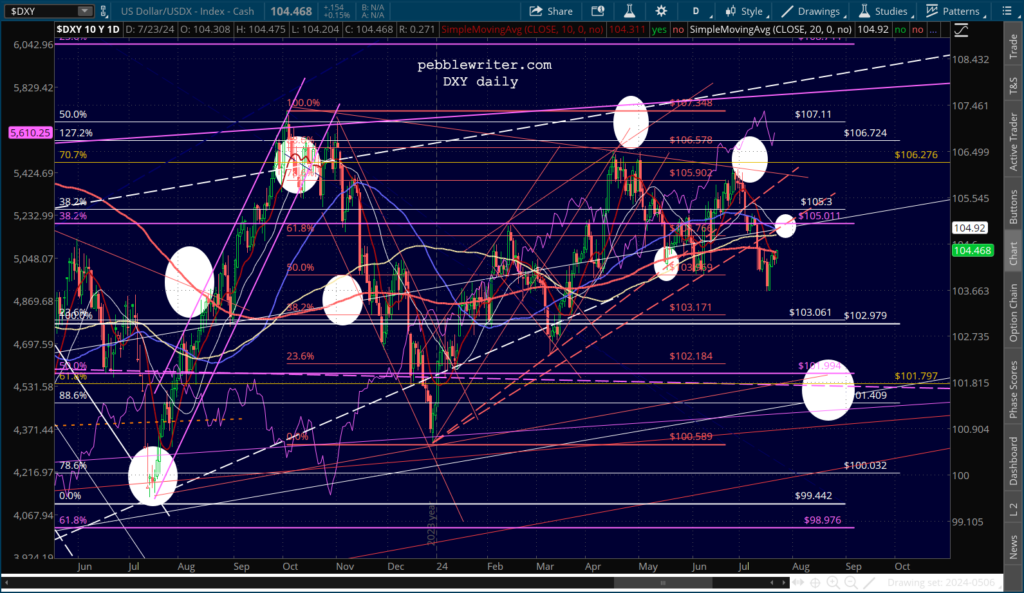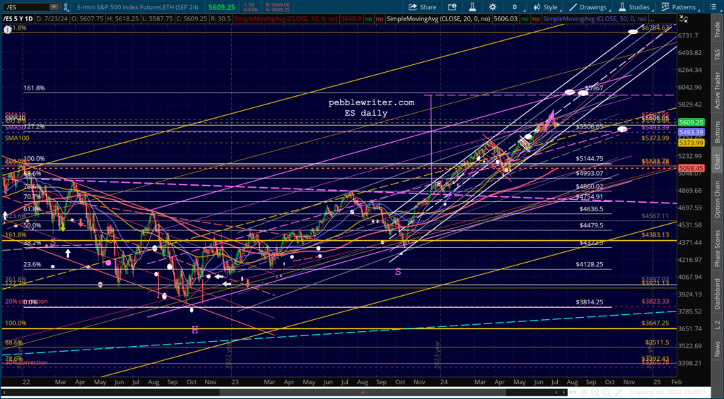 Note that ES’s 1.618 at 5967 equates to 5885 in SPX.This would mean a push up past SPX’s 1.618 – a conflict that will need to be resolved.
