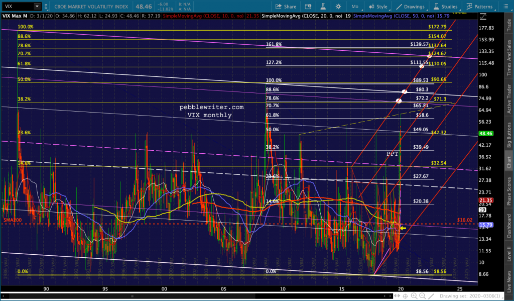 On Feb 28, VIX shot up to 49.48, but it only dropped as low as 24.93 before bouncing up to yesterday’s high of 62.12. The price to which it rallied was significant.