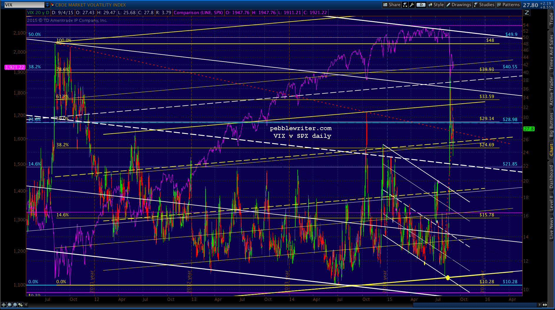 VIX finally broke out of its 8-month old flag pattern, and did it in style. In the process, it did a darn good impersonation of the 1997-2007 cycle.