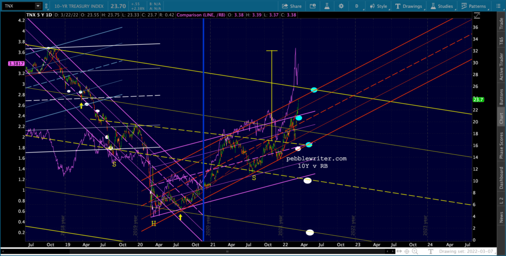 CL and RB are in an interesting place. Normally, their ascent would drive stocks higher. But, with even Jay Powell running around squawking about inflation, they might have finally reached the point where the algos don’t buy into that particular correlation.