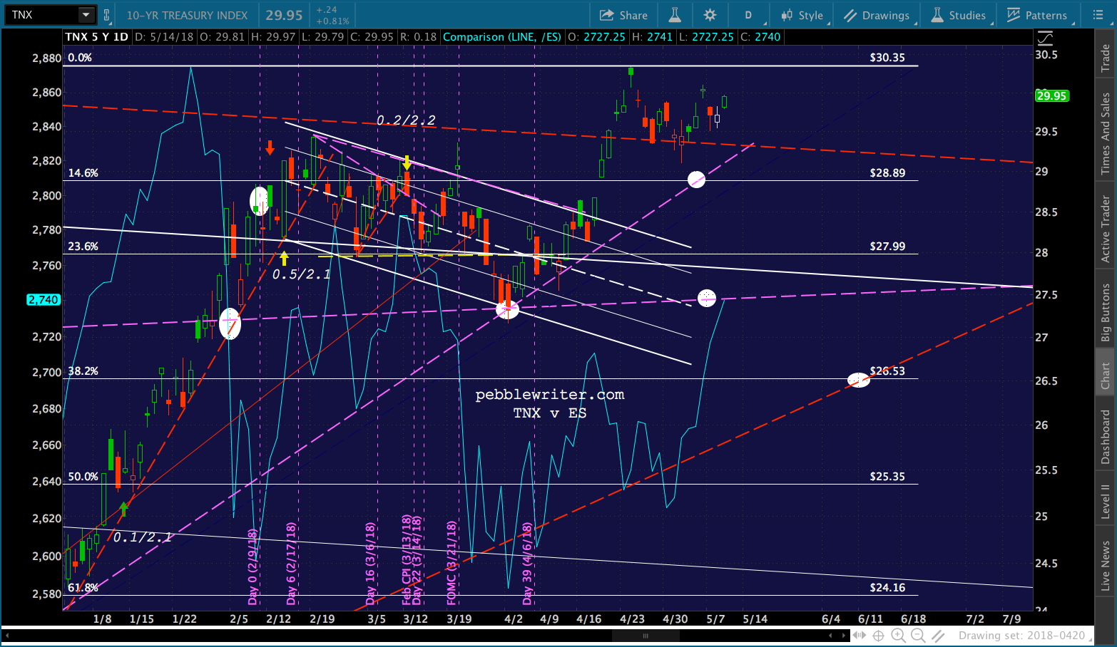 Though, TNX continues to hold in the same narrow range it’s been in since breaking out of the flag pattern on Apr 18.