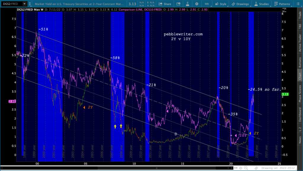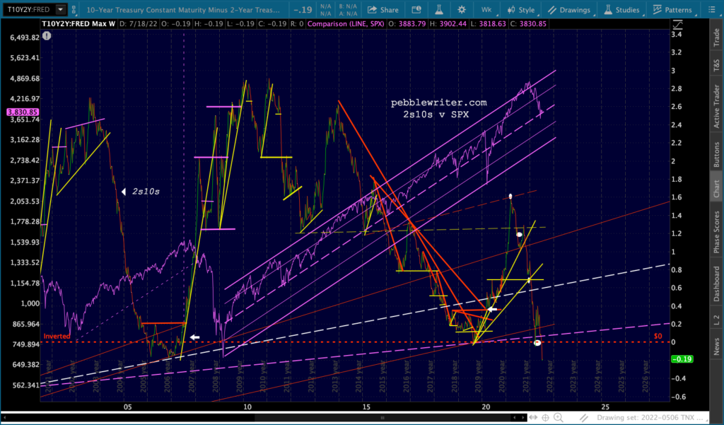 Remember, while inversions cause corrections, sharp rallies from inversions cause crashes. So far, the 2Y and 10Y have been racing each other higher. The day that the 2Y comes back to earth without the 10Y, we’ll see a very sharp downturn.
