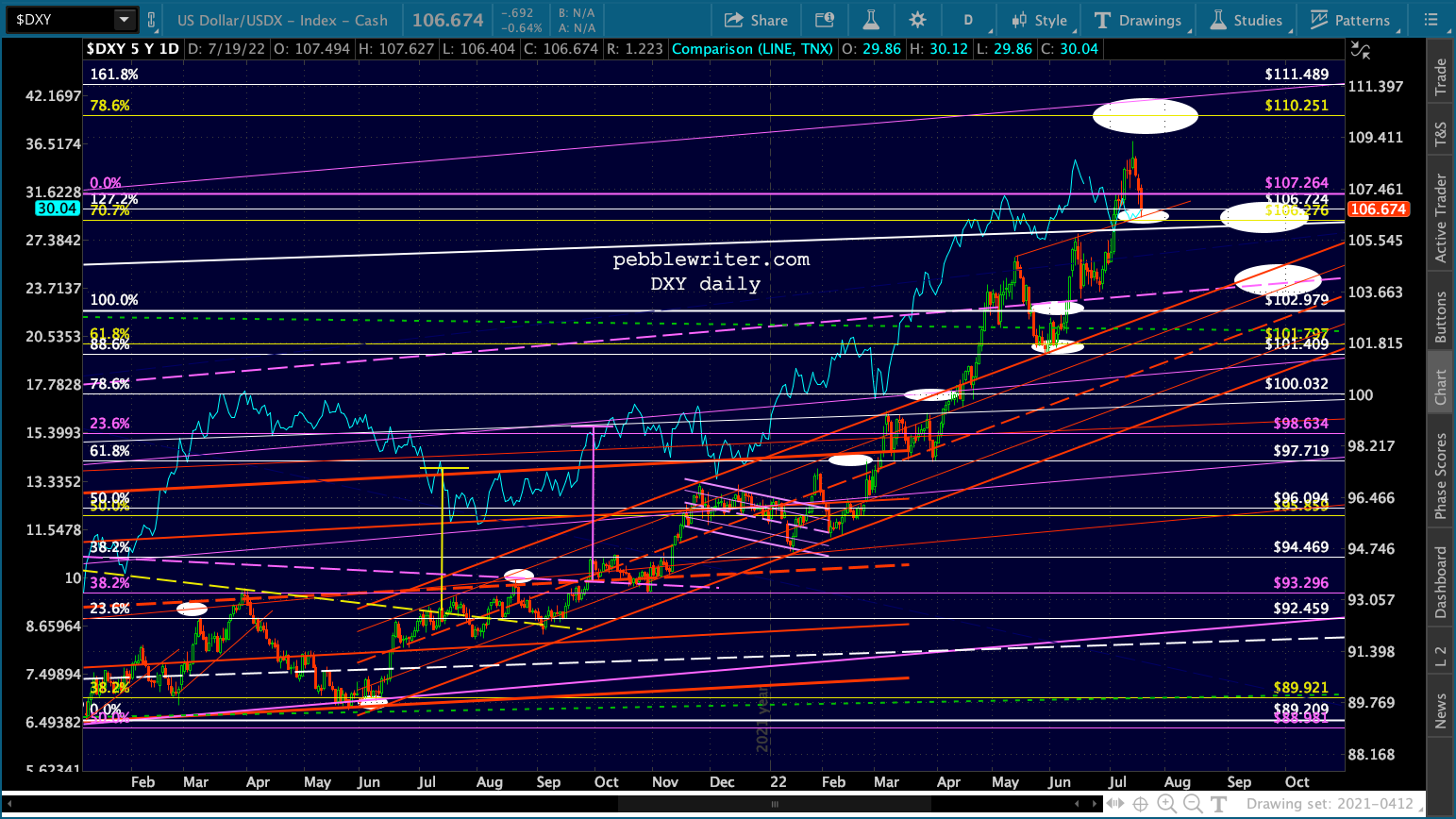 The net result is a continuation of TNX’s triangle, with no resolution as of yet.