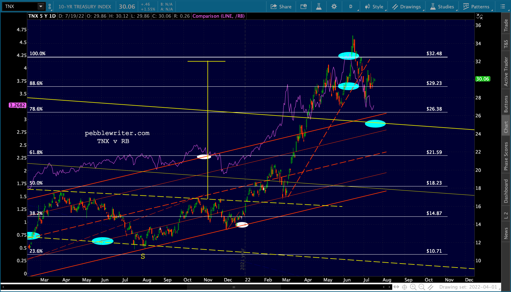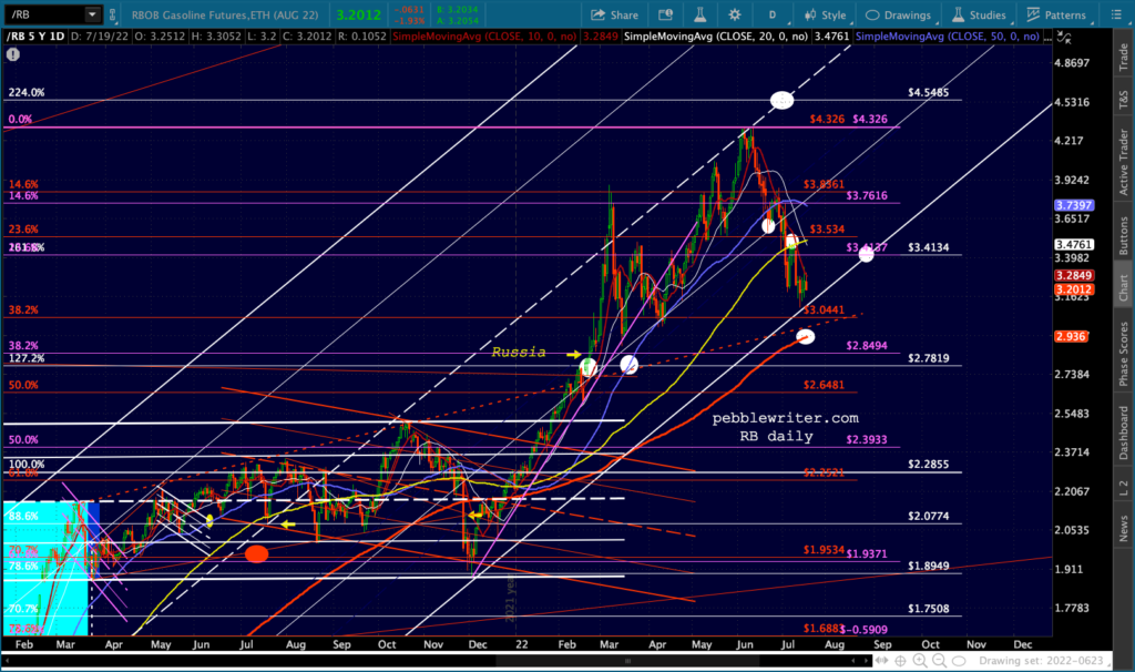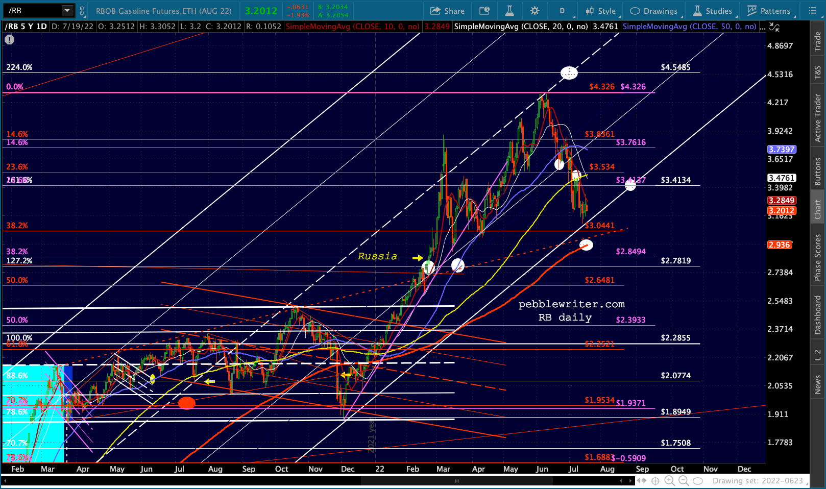 As expected, CL and RB both reversed off their SMA10s, but they have not yet made lower lows.